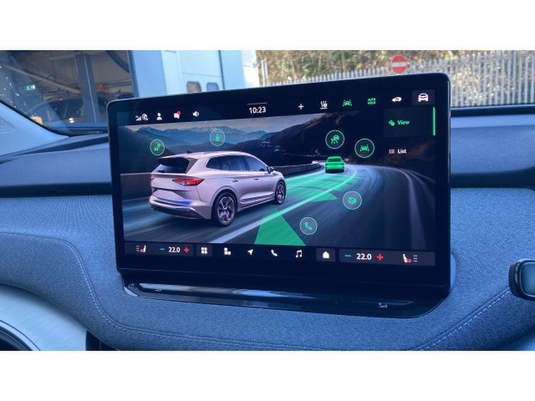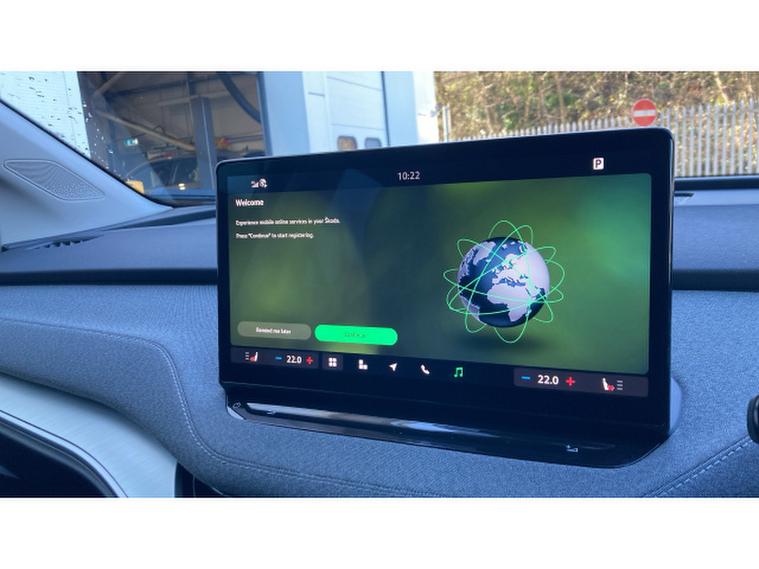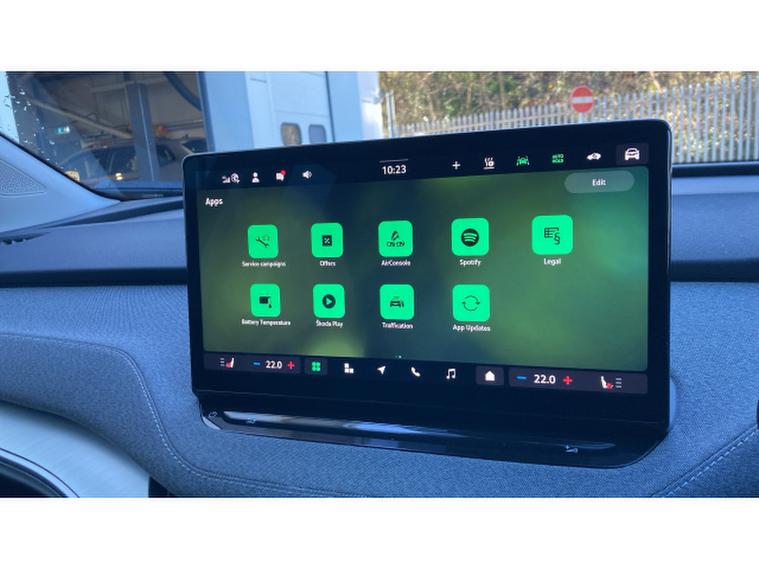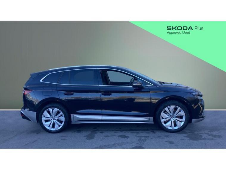 Skoda Enyaq 210kW 85 Edition 82kWh 5dr Auto Electric Estate, , The 2025 koda Enyaq Estate 210kW 85 Edition 82kWh 5dr Auto represents a compelling blend of electric performance, family practicality and modern technology, positioning itself as one of the most complete electric SUVs in its class. Powered by a rear-mounted electric motor producing 286PS (210kW) and a substantial 545Nm of torque, it delivers brisk acceleration with a 062mph time of around 6.7 seconds while maintaining impressive efficiency from its 82kWh battery, capable of delivering a WLTP driving range of up to roughly 360 miles on a single charge.The smooth single-speed automatic drivetrain ensures silent, effortless progress, while fast-charging capability allows the battery to replenish from around 1080% in under half an hour on rapid DC chargers, making long journeys far more practical.Inside, the Enyaq offers a spacious and high-quality cabin packed with technology, including a large central touchscreen infotainment system, heated front seats, ambient lighting and a heated multifunction steering wheel, alongside features such as tri-zone climate control and electrically adjustable seats with memory and massage functions for enhanced comfort.Practicality remains a core strength too, with generous rear passenger space, flexible folding rear seats and a large family-friendly boot, all complemented by kodas trademark Simply Clever touches like integrated storage solutions and even an umbrella in the door.The result is a refined, tech-rich electric estate that combines strong performance, long-distance usability and everyday practicality in a stylish, zero-emissions package.