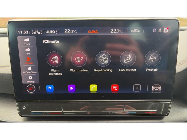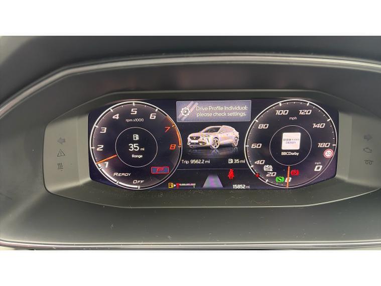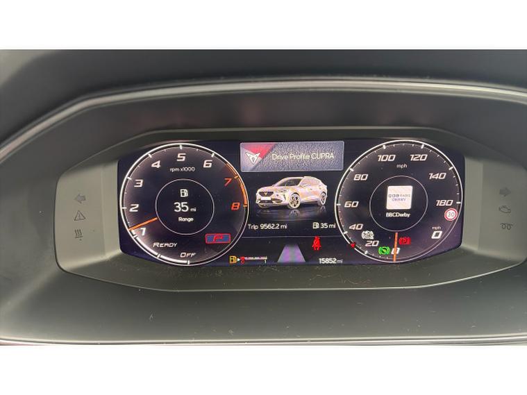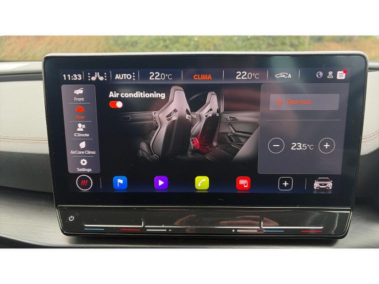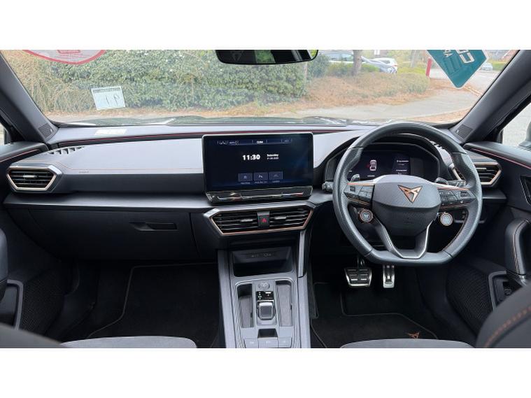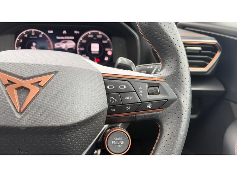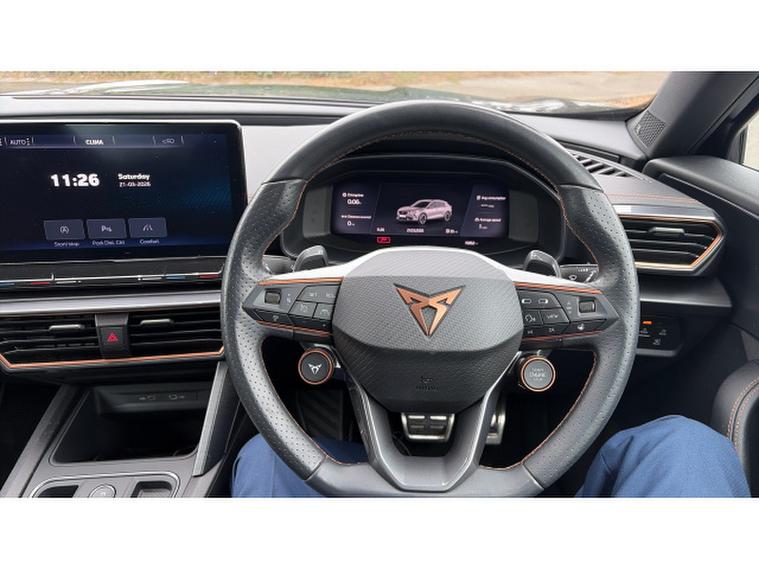 The VZN specification brings an exceptional level of luxury and technology. Inside, the cabin feels every bit as dramatic as the exterior, with a fully digital cockpit and a large central touchscreen infotainment system featuring integrated navigation and smartphone connectivity. Premium sports seats, ambient lighting and distinctive CUPRA design details create a truly special atmosphere. Heated seats, a heated steering wheel and tri-zone climate control ensure comfort, while a rear-view camera, adaptive cruise control and advanced driver assistance systems provide confidence on every journey.