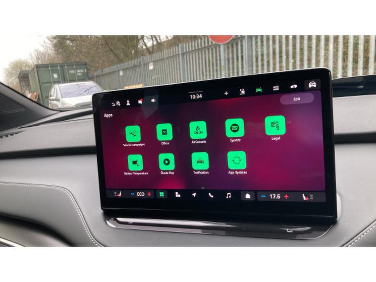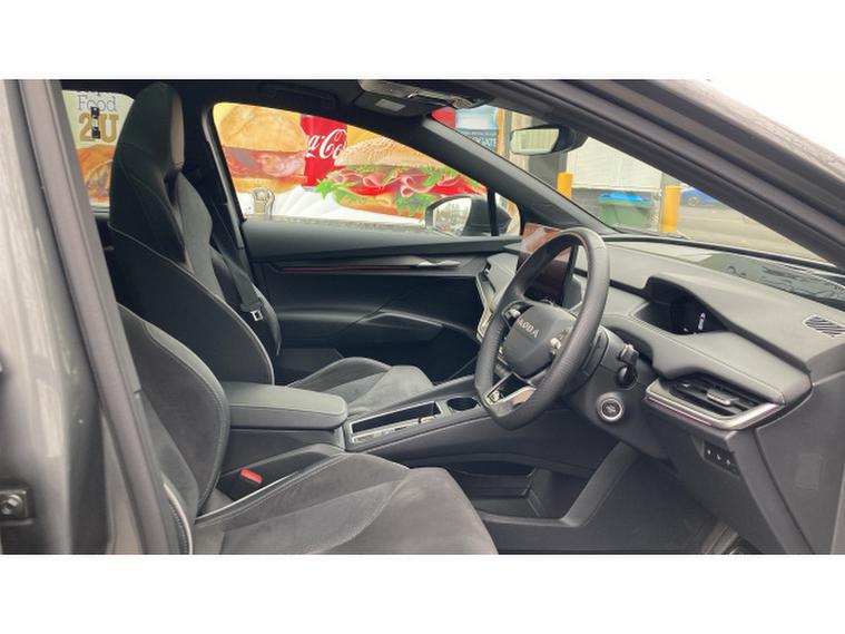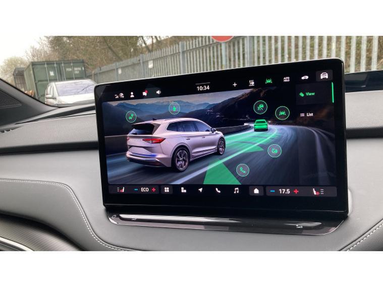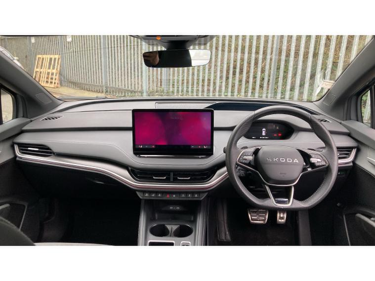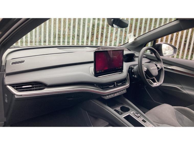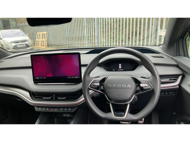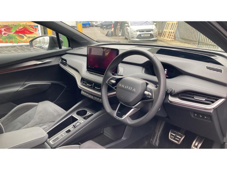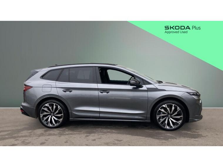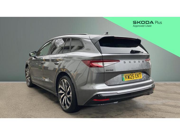 Skoda Enyaq 210kW 85x Sportline 82kWh 4x4 5dr Auto Electric Estate, , The 2025 koda Enyaq Estate 210kW 85x SportLine 82kWh 4x4 5dr Auto blends sporty design with cutting-edge electric performance, creating a premium family SUV that feels both powerful and practical. Driven by dual electric motors delivering a combined 286PS (210kW) and 545Nm of torque through an intelligent all-wheel-drive system, the Enyaq 85x accelerates from 062mph in around 6.7 seconds while remaining whisper-quiet and smooth thanks to its single-speed automatic drivetrain. An 82kWh battery provides an impressive WLTP range of up to roughly 330 miles, while rapid DC charging of up to 175kW allows the battery to top up from 1080% in around 28 minutes, making longer journeys far more convenient.SportLine trim enhances the cars dynamic appeal with sport suspension, gloss-black exterior detailing, large alloy wheels and a more athletic interior featuring sports seats, aluminium pedals and a heated multifunction steering wheel. Inside, the spacious cabin is dominated by a large 13-inch touchscreen infotainment system, digital cockpit and advanced driver-assistance technology including predictive adaptive cruise control and Travel Assist, while practical touches such as a hands-free electric tailgate and a generous 585-litre boot ensure the Enyaq remains every bit as family-friendly as it is futuristic.