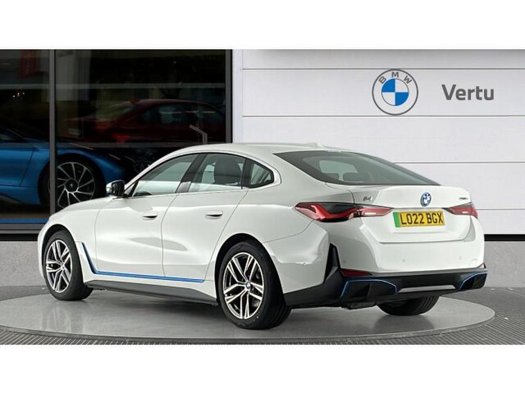 BMW i4 250kW eDrive40 Sport 83.9kWh 5dr Auto [Tech Pack] Electric Hatchback, , Discover this 2022 BMW i4 40 Sport, an electric vehicle offering an impressive battery maximum range of 365 miles when new. This Sport trim model boasts a substantial 84 kWh battery capacity, ensuring you can travel further on a single charge. For convenience, a full charge at home using a 7kW charger takes approximately 12 hours and 30 minutes, while rapid public charging can replenish the battery from empty to 80% in as little as 34 minutes. This i4 also comes equipped with the helpful Parking Assistant, which includes a rear camera, making manoeuvring in tight spaces much easier.