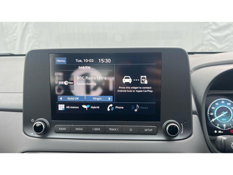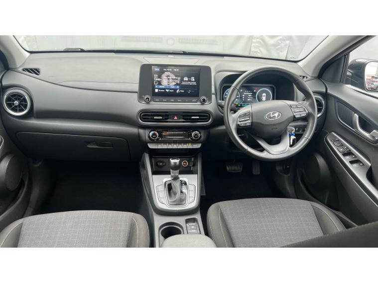 Hyundai Kona 1.6 GDi Hybrid SE Connect 5dr DCT Hybrid Hatchback, , Gloucester Ford have this low mileage Hyundai Kona SE Connect DCT finished in Abyss Black. This Kona is a stylish, efficient, and well-equipped compact SUV that offers an excellent balance of modern technology, comfort, and everyday practicality. Finished in the sleek Abyss Black colour, this vehicle has a bold and contemporary appearance that stands out on the road while maintaining a refined and sophisticated look. Powered by a 1.6-litre petrol hybrid engine, the Kona delivers an impressively smooth and efficient driving experience. The hybrid system works seamlessly with the automatic dual-clutch transmission (DCT) to provide responsive performance while maintaining excellent fuel economy, making it an ideal choice for both city driving and longer motorway journeys. Inside, the Kona SE Connect offers a thoughtfully designed cabin that focuses on comfort, convenience, and intuitive technology. The interior provides supportive seating, quality materials, and a driver-focused layout that makes every journey enjoyable. The 8-inch touchscreen infotainment system with smartphone integration allows easy access to music, and connectivity features, ensuring drivers stay connected while on the move. Practical technology also enhances everyday usability. The rear parking sensors and rear-view camera with guidance system make manoeuvring and reversing far easier, particularly in tight spaces or busy car parks. These helpful features provide extra visibility and confidence when parking, adding convenience and reassurance for the driver. The Konas compact SUV design also offers excellent versatility, with comfortable seating for passengers and a practical boot space for shopping, luggage, or weekend adventures. Its raised driving position provides great visibility of the road ahead, while Hyundais strong reputation for reliability adds further peace of mind. Overall, the Hyundai Kona 1.6 GDi Hybrid SE Connect DCT in Abyss Black is a smart and efficient vehicle that combines striking design, advanced hybrid technology and helpful driver-assistance features.