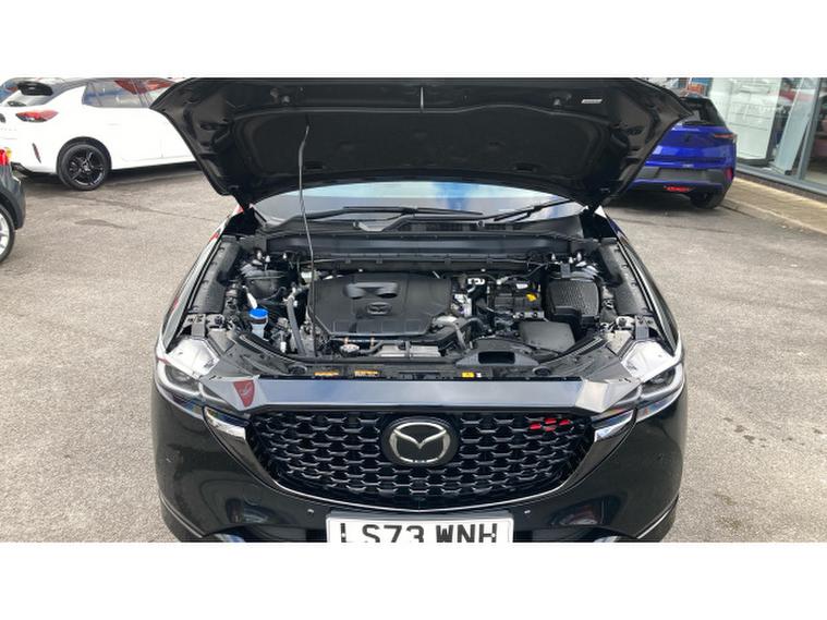 Mazda CX-5 2.0 e-Skyactiv G MHEV Homura 5dr Petrol Estate, , Discover this 2023 Mazda CX-5 e-SKYACTIV G Homura, a well appointed vehicle ready for its next owner. This model boasts a 2.0 litre petrol engine and meets Euro 6 emissions standards, making it a sensible choice. Inside, you'll find a premium BOSE sound system for an enhanced audio experience, and a power tilt and slide sunroof to let in natural light. The driver's seat offers extensive adjustment, including power slide, recline, height, and lumbar support, all with a memory function linked to the smart key. For added comfort, the steering wheel is also heated.