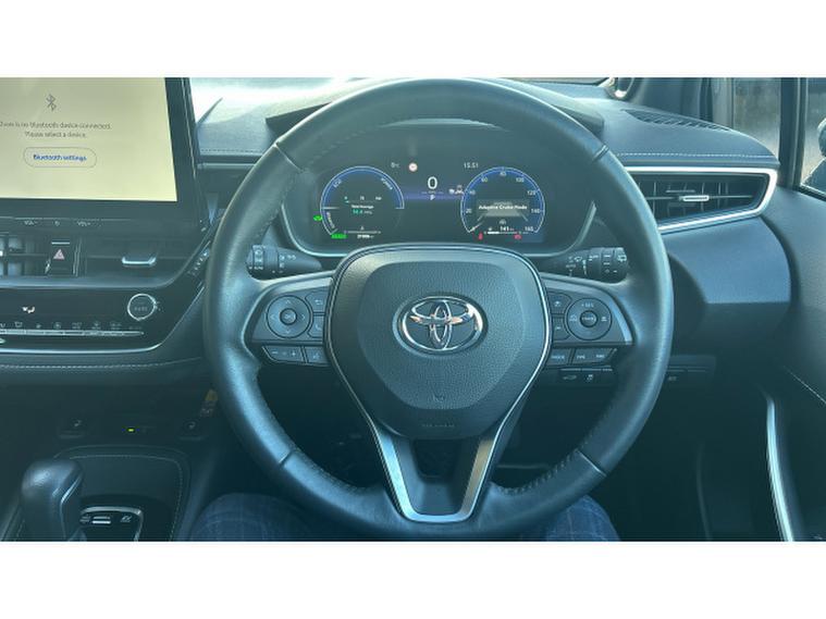 On the outside, the Corollas sleek design stands out with LED headlights, stylish alloy wheels, and a bold front grille, giving it a modern and dynamic presence on the road. Despite its sporty styling, it remains highly practical with five doors, comfortable rear seating, and a versatile boot for everyday needs.