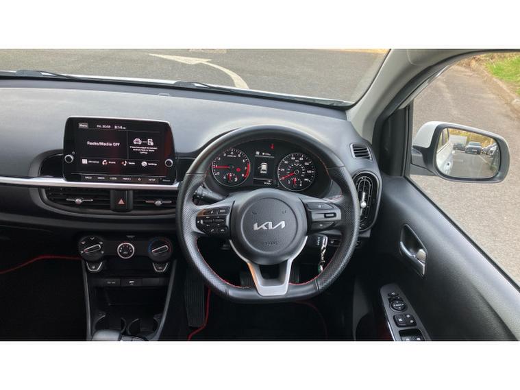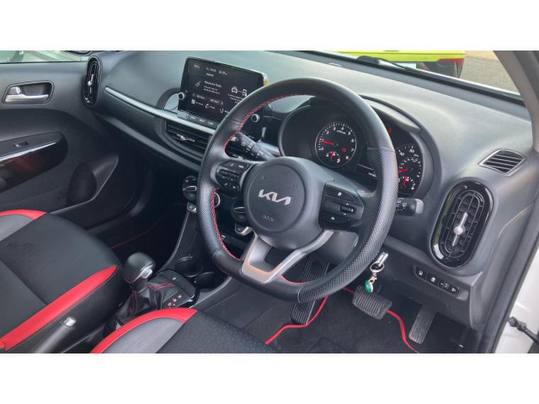 Kia Picanto 1.0 GT-line 5dr Auto [4 seats] Petrol Hatchback, , This 2022 Kia Picanto 1.0 GT-Line 5dr Auto is proof that small can still mean sporty and sophisticated. While many city cars feel basic, the GT-Line trim gives the Picanto a punchy, energetic personality that makes every short trip feel like a bit of an adventure. You get dedicated GT-Line bumpers, a signature tiger-nose grille with red accents, and twin exhaust tips that give it a pocket rocket vibe. The 16-inch alloy wheels and LED daytime running lights ensure it stands out in a car park, looking far more expensive than its price tag suggests. Despite its tiny footprint making it a dream to park, you still get a reversing camera with dynamic guidelines, making tight city spots effortless. Even in this compact frame, you enjoy air conditioning and electric folding mirrors, luxuries that make daily life just that bit easier.