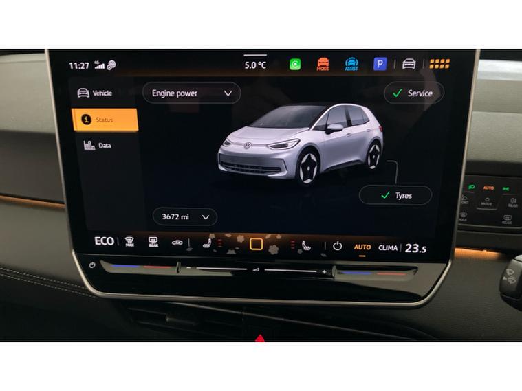 Volkswagen ID.3 150kW Match Pro 59kWh 5dr Auto Electric Hatchback, , This 2025 Volkswagen ID.3 Pro Match is a superb example of electric motoring, boasting a single owner from new and Volkswagen manufacturer approval. This electric hatchback features a 63 kWh battery, offering a maximum range of 268 miles when new, ensuring you can travel further on each charge. Convenience is key with this Match trim, featuring a Bluetooth mobile phone interface, a rear view camera for easier parking, and keyless entry and starting. The Matrix LED headlights provide excellent visibility in all conditions, including poor weather, and the wireless smartphone charger keeps your devices powered up on the go.