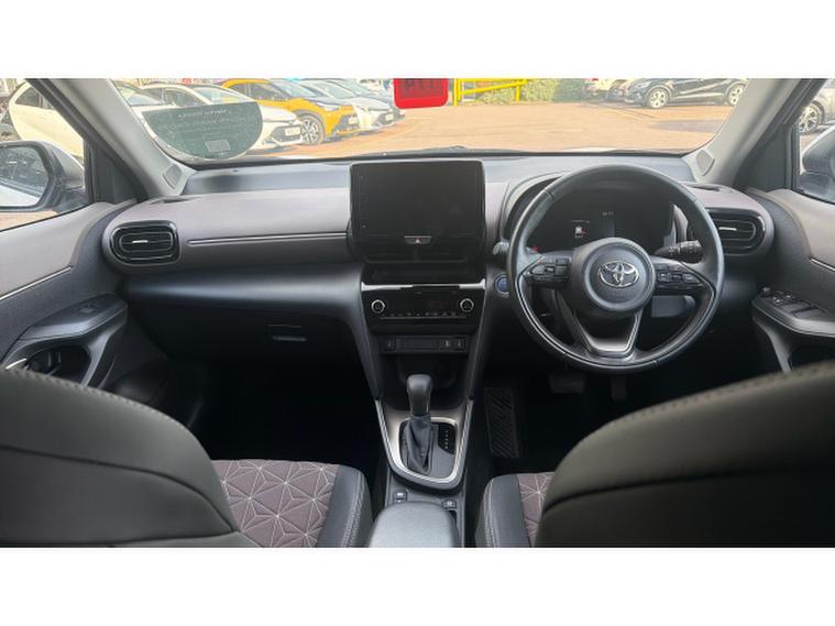 The Excel trim represents the top specification in the Yaris Cross range, offering a premium interior and an outstanding level of equipment. Inside, youll find a refined cabin featuring heated seats, a heated steering wheel and dual-zone climate control, ensuring comfort in all seasons. The large touchscreen infotainment system includes satellite navigation, smartphone connectivity with Apple CarPlay and Android Auto, and a high-quality audio system.