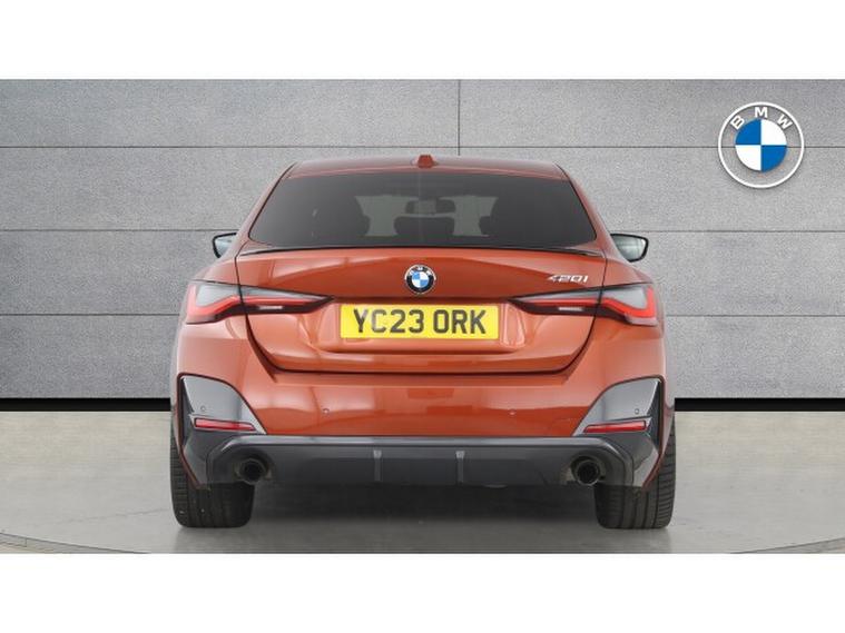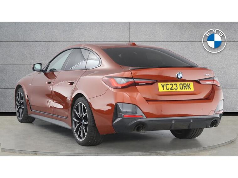 BMW 4 Series 420i M Sport 5dr Step Auto Petrol Hatchback, , Stand out from the crowd with this breathtaking Sunset Orange Metallic BMW 420i M Sport Gran Coupe. Its sleek coupe silhouette is complemented by bold 19-inch alloy wheels, giving the car a powerful, athletic presence. Step inside to find Black Seats with Grey Contrast Stitching, offering a refined sports aesthetic that blends comfort with premium craftsmanship.