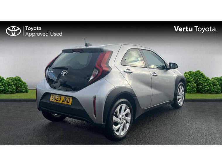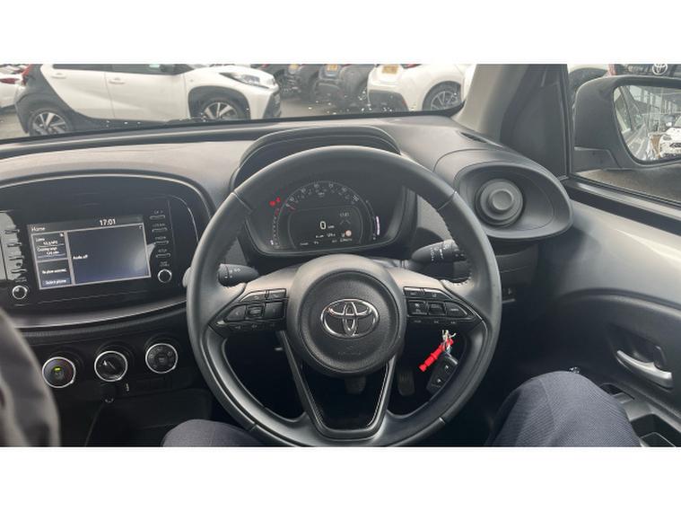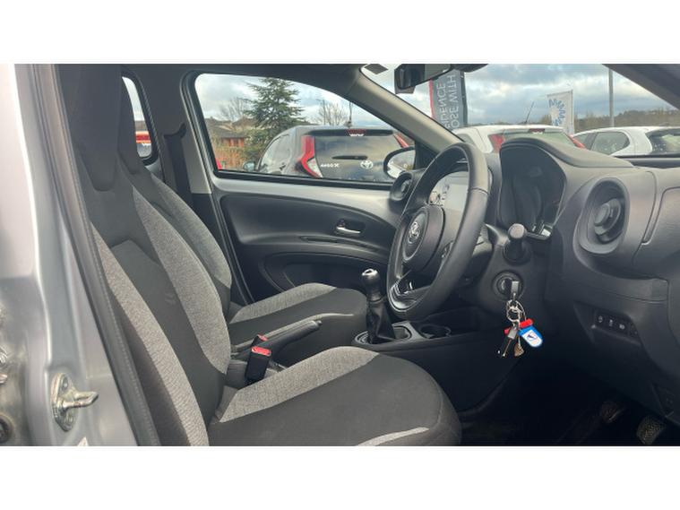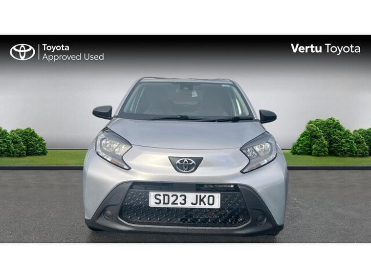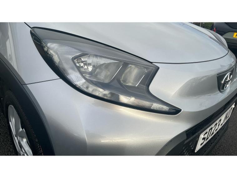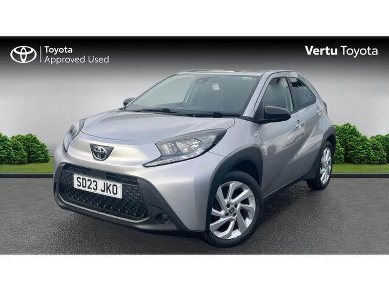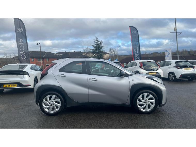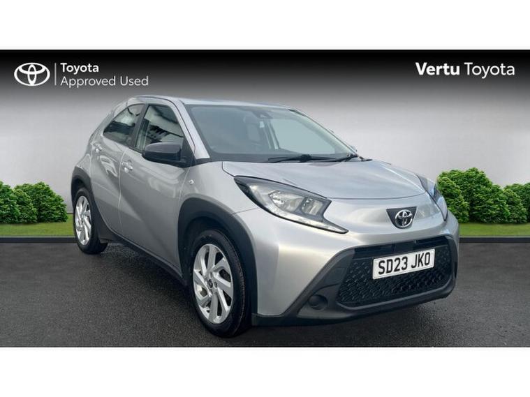 Toyota Aygo X 1.0 VVT-i Pure 5dr Petrol Hatchback, , Experience big personality in a compact package with this stylish Toyota Aygo X 1.0 VVT-i Pure, finished in sleek Silver paintwork and having covered just 22, 461 miles. Designed for modern city driving, this eye-catching crossover delivers fantastic efficiency from its responsive 1.0 VVT-i petrol engine while offering impressive practicality with its 5-door layout. Inside, youll find a host of smart technology including a 7-inch Toyota Touch multimedia system, smartphone integration with Apple CarPlay and Android Auto, Bluetooth connectivity, DAB digital radio and a clear 4.2-inch multi-information display to keep you connected on every journey. Safety is a priority too, thanks to Toyota Safety Sense with lane departure alert, pre-collision system, adaptive cruise control functionality, reversing camera, and multiple airbags for added peace of mind. Stylish exterior details such as LED light guides, automatic headlights, gloss black mirrors and bold crossover styling ensure it stands out wherever it goes. Best of all, this Aygo X benefits from Toyotas incredible 10-year Service Activated Warranty, giving you long-term confidence and reassurance every time you drive. Efficient, fun and packed with technology, this Aygo X is the perfect blend of reliability, style and everyday practicality.