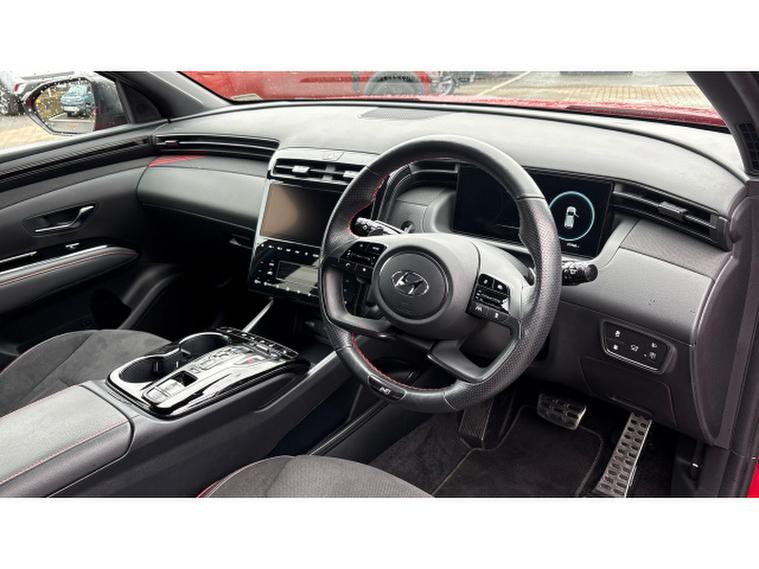 The range-topping N Line S model comes with an exceptional level of equipment including panoramic glass roof, heated and ventilated front seats, heated rear seats, premium sound system, large touchscreen navigation with Apple CarPlay & Android Auto, digital driver display, surround view camera, adaptive cruise control, blind-spot monitoring, wireless phone charging and striking N Line styling with 19 alloy wheels. The Tucson also offers excellent practicality with a spacious interior, large boot and comfortable seating for the whole family.