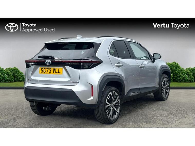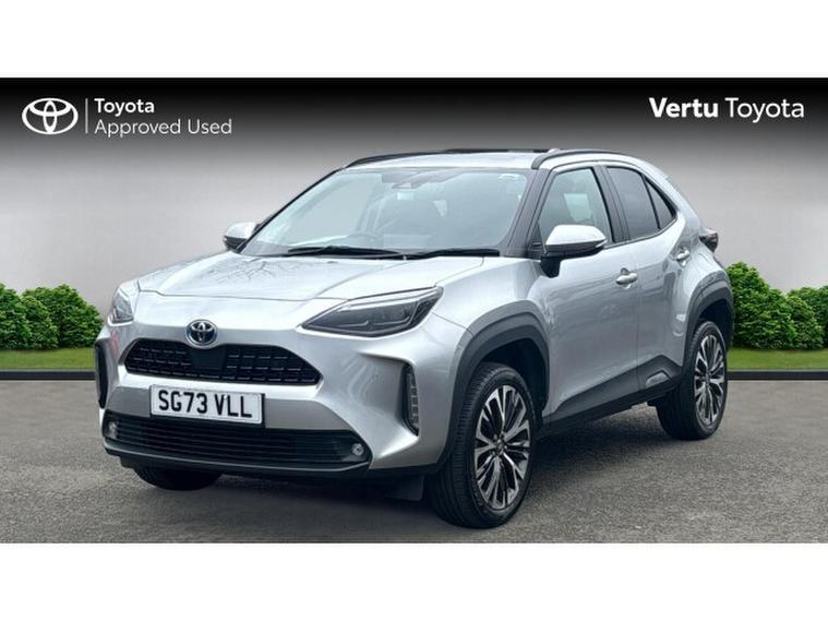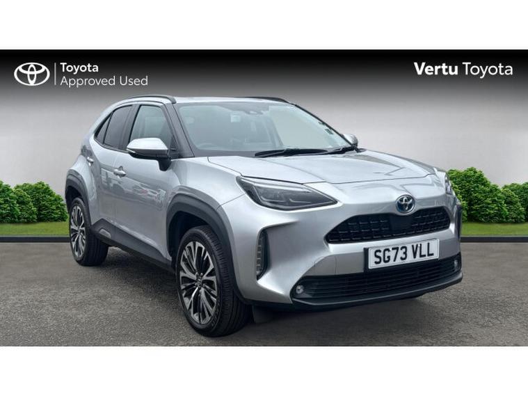 Toyota Yaris Cross 1.5 Hybrid Excel 5dr CVT Hybrid Estate, , Discover the perfect blend of style, efficiency, and cutting-edge technology with this stunning Toyota Yaris Cross Excel 1.5 Hybrid Automatic, finished in sleek Silver Metallic paintwork and with just 6, 583 miles on the clock. This top-spec Excel model delivers a refined and responsive hybrid drive, offering exceptional fuel economy without compromising performance. Inside, youll find a premium cabin packed with advanced features including a high-definition touchscreen infotainment system with smartphone integration, heated seats, a reversing camera, adaptive cruise control, and Toyota Safety Sense for ultimate peace of mind. Elevated driving position meets compact SUV practicality, making it ideal for both city driving and longer journeys. Plus, benefit from Toyotas impressive 10-year service-activated warranty, giving you long-term confidence and value. This is a superb opportunity to own a nearly-new, high-spec hybrid that truly stands out from the crowd.