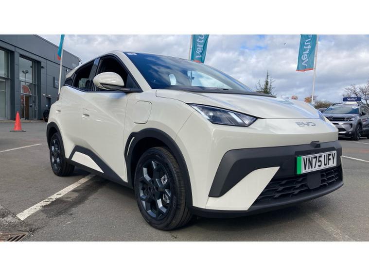 BYD Dolphin Surf 115kW Comfort 43kWh 5dr Auto Electric Hatchback, , This 2025 BYD Dolphin Surf Comfort is an exceptional example, boasting incredibly low mileage for its age, having covered just 70 miles. As an electric vehicle, it offers a smooth and efficient driving experience. The Comfort trim level ensures a well equipped interior, and this particular model comes with manual climate control for your comfort. It also features a towing hook, adding to its practicality.