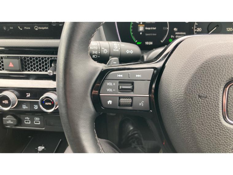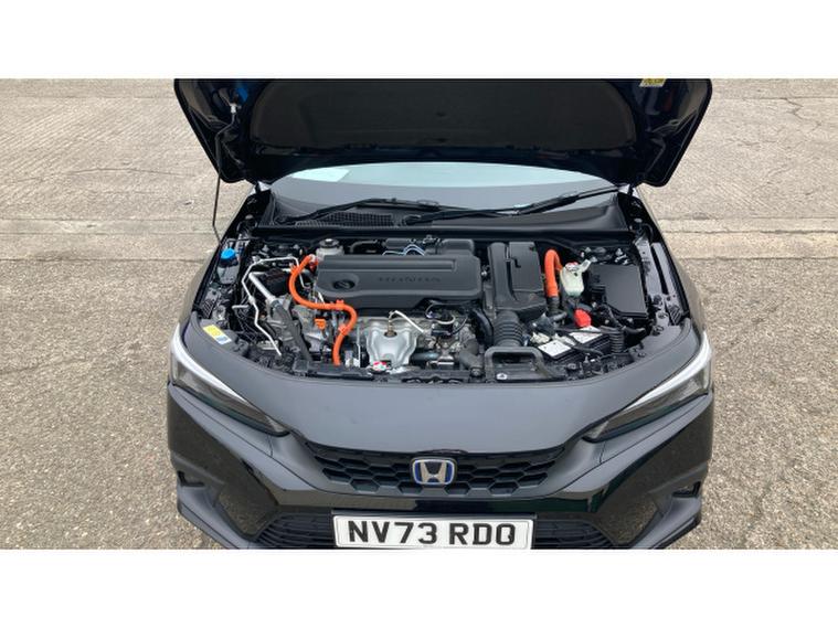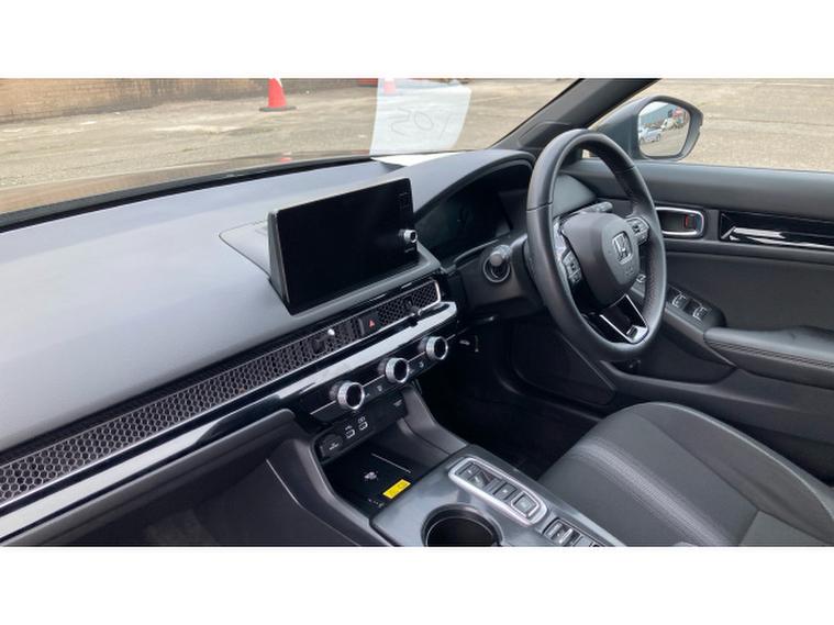 Powered by a 2.0‑, litre e:HEV hybrid powertrain paired with a smooth CVT automatic transmission, this Civic delivers refined performance with excellent efficiency. The hybrid system intelligently blends electric and petrol power, offering responsive acceleration from standstill and composed performance at higher speeds. This setup enhances fuel economy and reduces emissions without compromising driving engagement, making it equally capable in city traffic or on longer journeys.