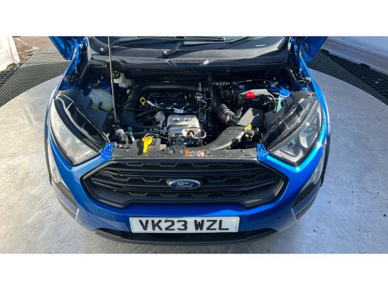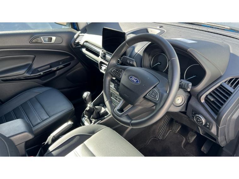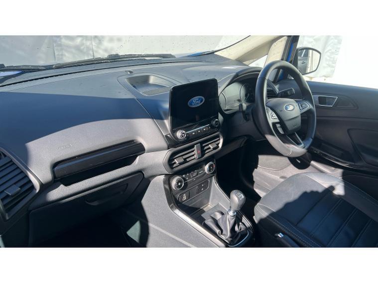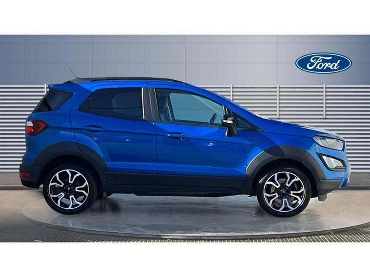 Ford EcoSport 1.0 EcoBoost 125 Active 5dr Petrol Hatchback, , Gloucester Ford have this 1 owner from new Ford Ecosport 1.0 EcoBoost 125 Active finished in the metallic Desert Island Blue with contrasting Black roof and door mirrors. This EcoSport 1.0 EcoBoost 125 Active is a stylish and practical compact SUV that combines modern technology, efficient performance, and everyday versatility. Finished in the distinctive Desert Island Blue colour, this model stands out with a fresh and eye-catching look. Its bold design, raised ride height, and rugged Active styling give the EcoSport a confident presence on the road while maintaining the compact dimensions that make it ideal for both urban and longer journeys. The 1.0-litre EcoBoost 125PS petrol engine delivers a perfect balance of performance and efficiency. This award-winning engine provides responsive acceleration and smooth driving characteristics while remaining impressively economical, making it well suited for commuting, city driving, and weekend trips alike. Its refined performance ensures a comfortable and enjoyable driving experience every time you get behind the wheel. Inside the cabin, the EcoSport Active offers a well-designed and comfortable interior equipped with modern technology to enhance every journey. A key highlight is the Ford SYNC 3 infotainment system, featuring an easy-to-use 8-inch touchscreen display. This advanced system includes DAB radio, navigation, and seamless smartphone connectivity through Apple CarPlay and Android Auto, allowing drivers to access calls, music, and apps safely and conveniently while on the move. Convenience and confidence are further enhanced with the addition of a rear-view camera and rear parking sensors, which help make reversing and parking significantly easier. These features provide clear visibility and audible alerts, helping drivers manoeuvre into tight spaces with greater accuracy and peace of mind. The Ford EcoSport also offers excellent practicality, with comfortable seating, a versatile boot space, and clever interior storage solutions that make it ideal for everyday life.