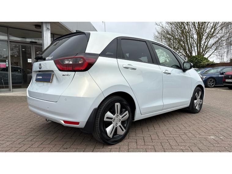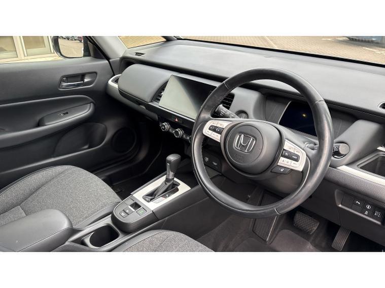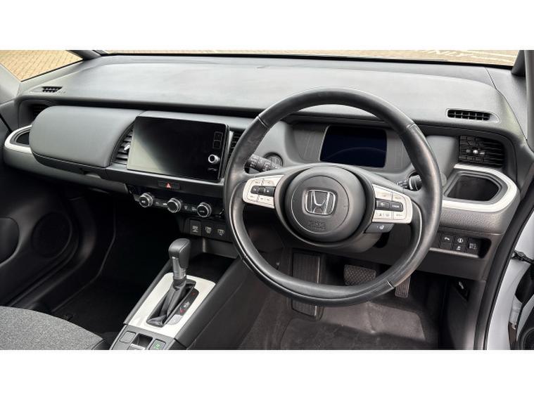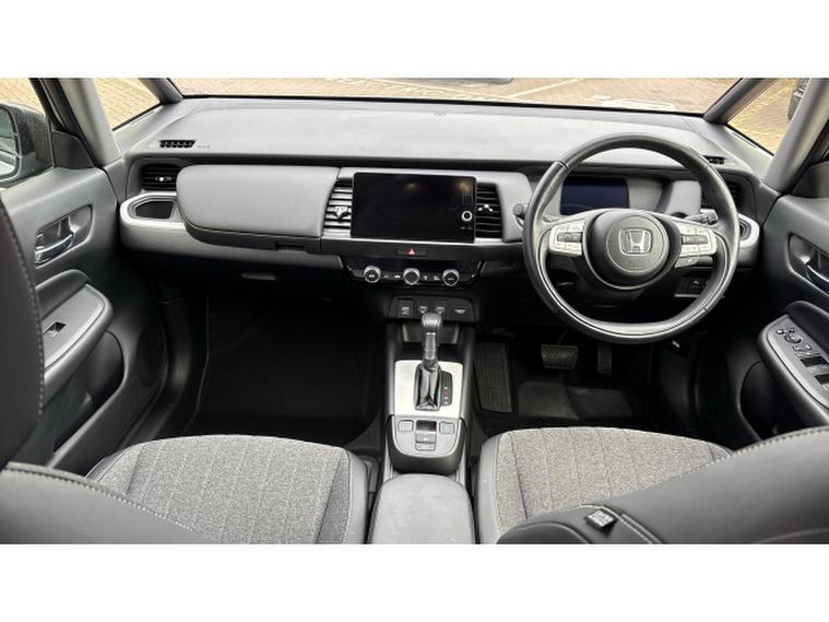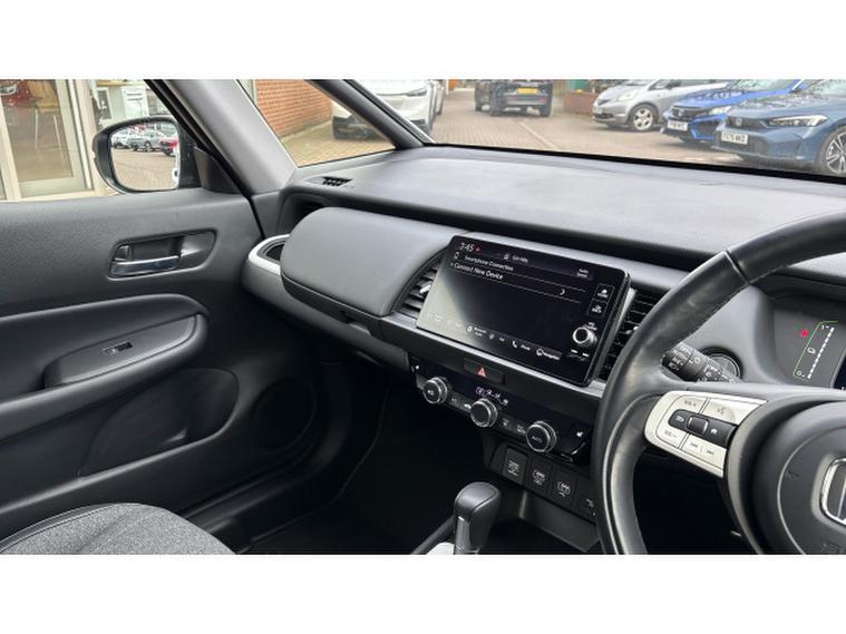 Honda Jazz 1.5 i-MMD Hybrid EX 5dr eCVT Hybrid Hatchback, , Thanks for choosing this Honda Jazz from Boston Honda! This low mileage Jazz was supplied new from Boston Honda on the 23rd December 2021 and has a full Boston Honda service history and just one owner. It looks great in Sunlight White with a clean black cloth and leather interior, and has been really well looked after. This is the top of the range EX model, which benefits from front and rear sensors, parking camera, satellite navigation and heated seats.