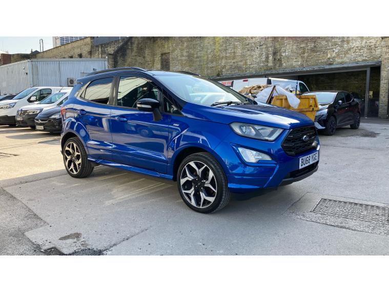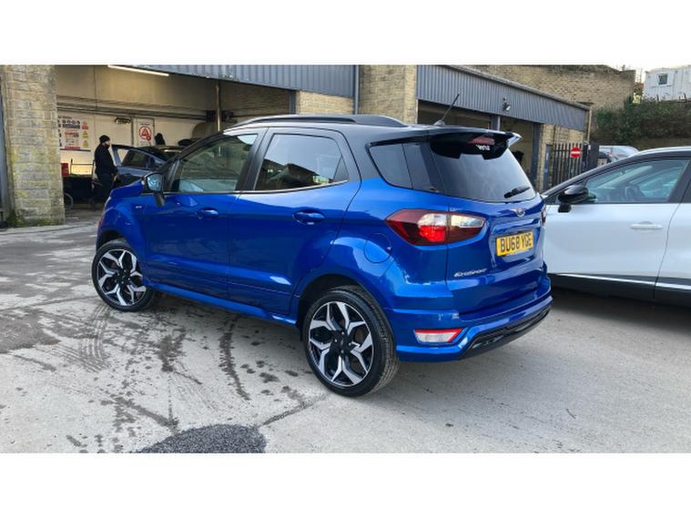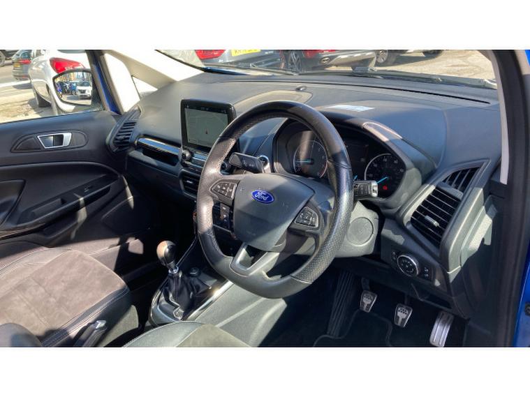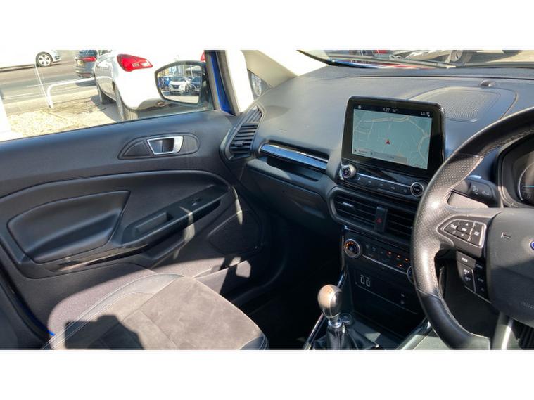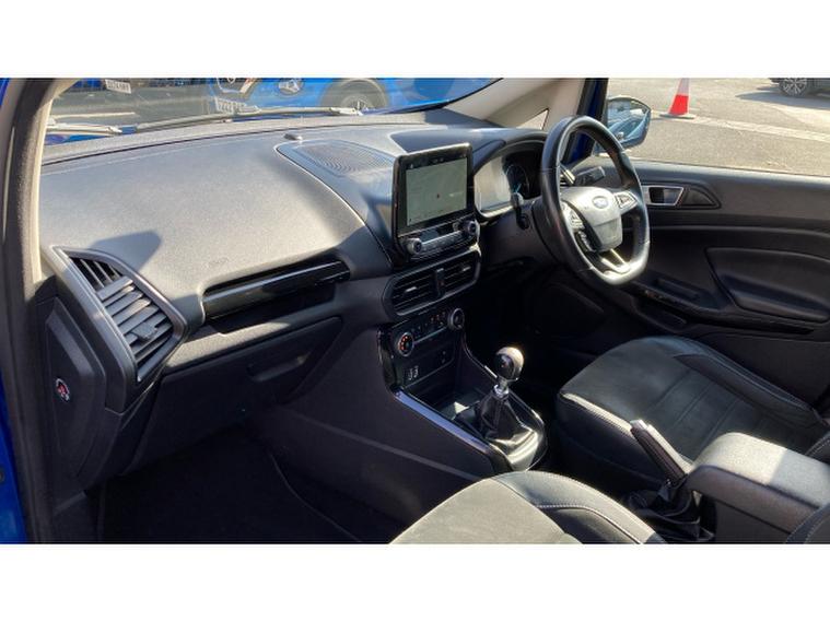 Ford EcoSport 1.0 EcoBoost 125 ST-Line 5dr Petrol Hatchback, , Discover this 2018 Ford EcoSport T ST-Line, a stylish and practical compact SUV. This Euro 6 compliant model is powered by an efficient 1.0 litre petrol engine, offering a compelling blend of performance and economy with a highlighted fuel efficiency of 53 miles per gallon. Its ST-Line trim level is evident in the sporty ST-Line bumpers and side skirts, enhancing its dynamic appearance. Inside, you'll find the user friendly Ford Navigation System featuring Ford SYNC 3, which seamlessly integrates with both Apple CarPlay and Android Auto, allowing for easy access to your smartphone's apps, music, and calls via Bluetooth.