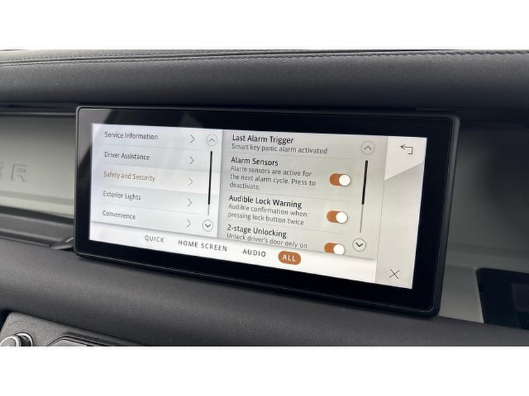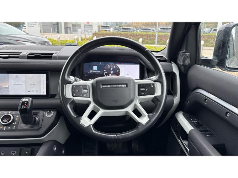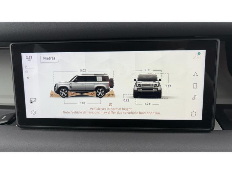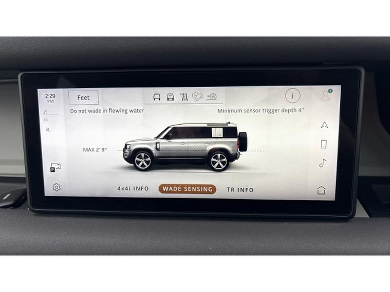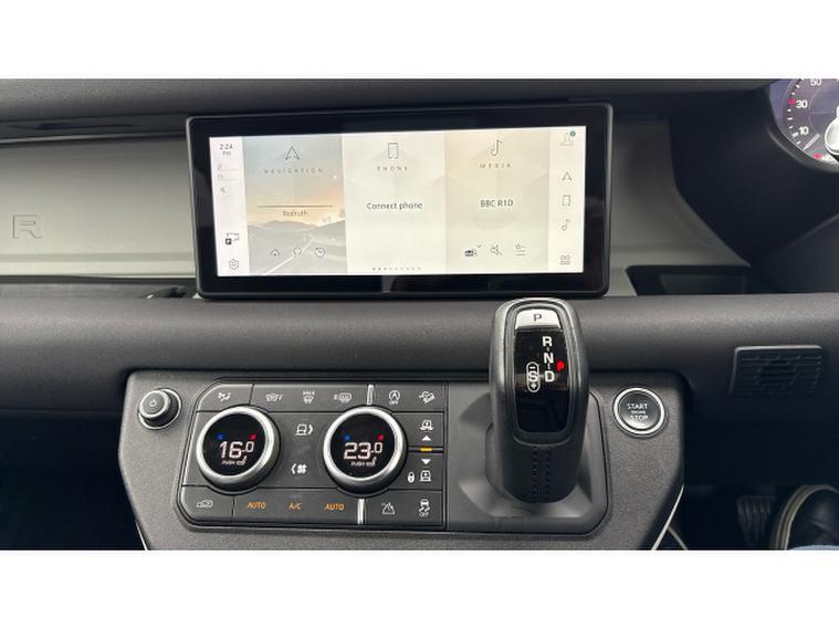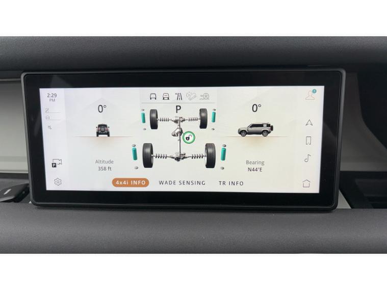 The Defender SE features Pivi Pro Infotainment with navigation, curved glass touchscreen and wireless Apple CarPlay and Android Auto. The Interactive Driver Display presents clear driving information in the drivers line of sight, while Terrain Response automatically adapts drivetrain and traction settings to suit changing conditions. Dual-zone climate control, leather seating and a spacious cabin ensure everyday comfort, while permanent all-wheel drive delivers confidence both on and off road.
