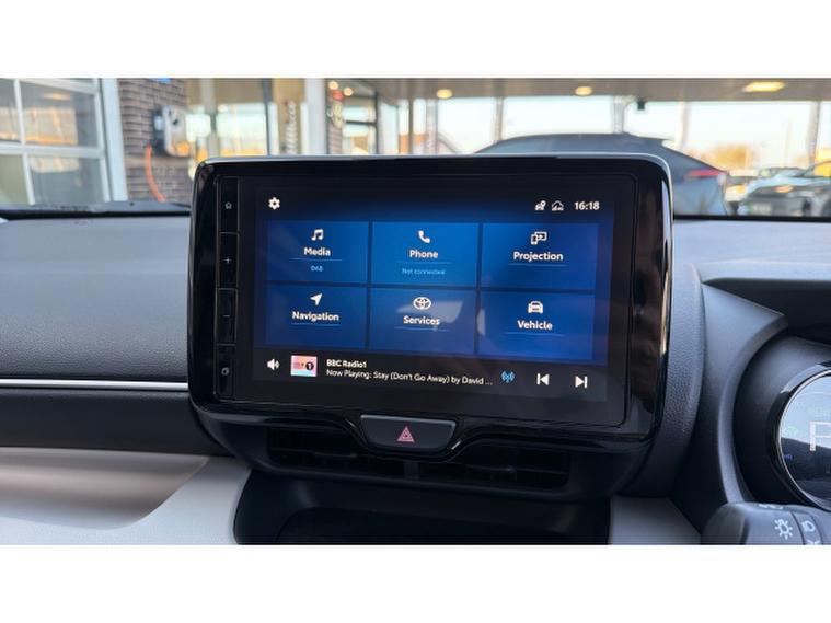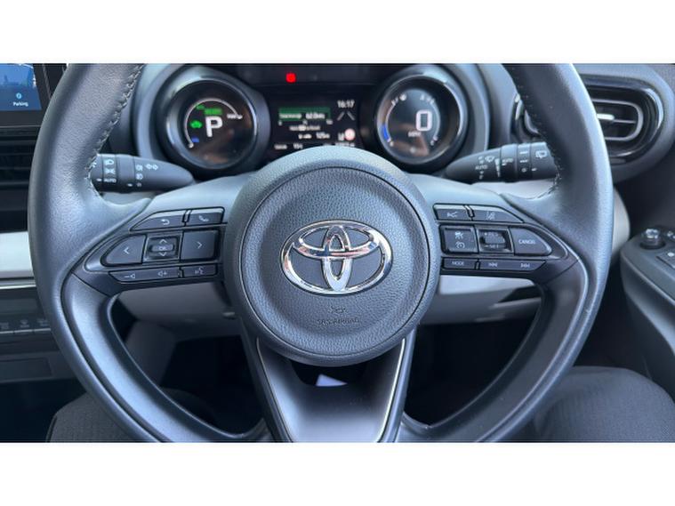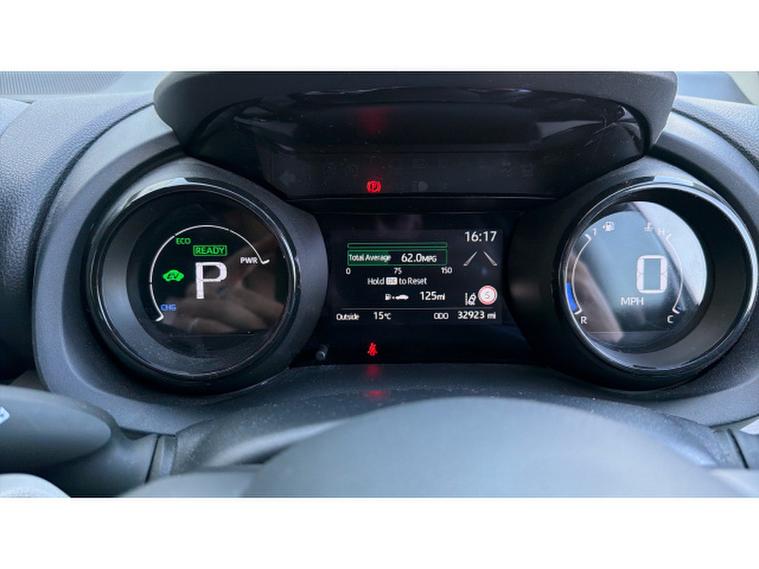Powered by a 1.5-litre petrol-electric hybrid engine paired with a seamless CVT automatic transmission, this Yaris delivers impressive fuel economy and ultra-low emissions while maintaining a lively and refined driving experience. The hybrid system automatically switches between petrol and electric power to maximise efficiency, making it ideal for both city commuting and longer journeys.