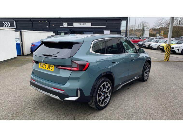 BMW X1 xDrive 23i MHT xLine 5dr Step Auto Petrol Estate, , Stand out from the crowd with this exceptional BMW X1 X-Line SUV, finished in the distinctive and eye-catching Cape York Green Metallic. Its rugged yet refined design is perfectly complemented by stylish 19-inch alloy wheels, giving it a confident stance that's ready for both city streets and weekend adventures.
