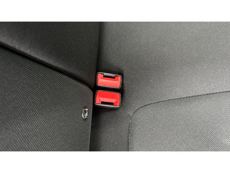 - Cloth upholstery with red stitching