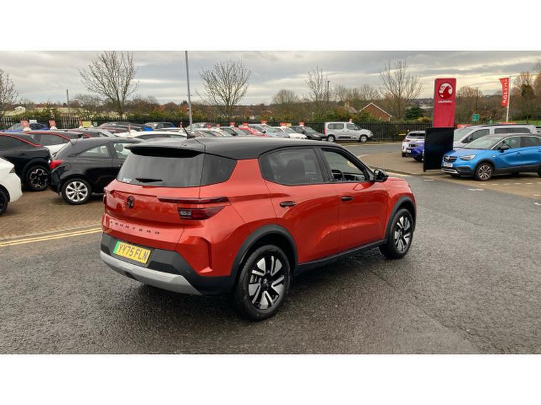Vauxhall Frontera 83kW GS 44kWh 5dr Auto Electric Estate, , The Vauxhall Frontera GS Electric in Canyon Orange delivers standout value for money, combining SUV practicality with impressive standard equipment. Its efficient electric drivetrain keeps running costs very low, with cheaper charging and reduced maintenance compared to traditional cars. Its a smart, eye-catching choice for affordable, everyday electric driving.