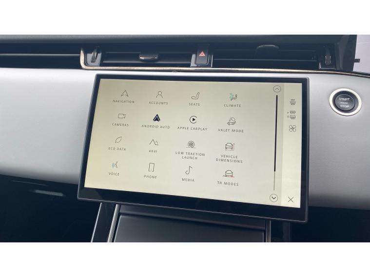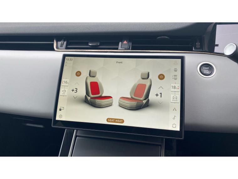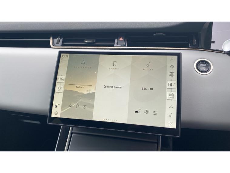 The Dynamic HSE features Pivi Pro Infotainment with curved glass touchscreen, navigation, wireless Apple CarPlay and Android Auto, alongside an Interactive Driver Display and Meridian sound system. Comfort is enhanced with heated electric memory front seats, heated steering wheel, dual-zone climate control and configurable ambient lighting. Driver assistance features include 3D surround camera, adaptive cruise control and front and rear parking sensors, while Matrix LED headlights with signature DRL complete the refined exterior.