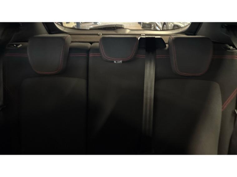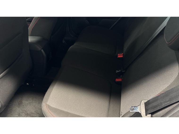 - Cloth upholstery with red stitching