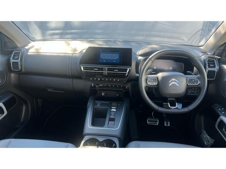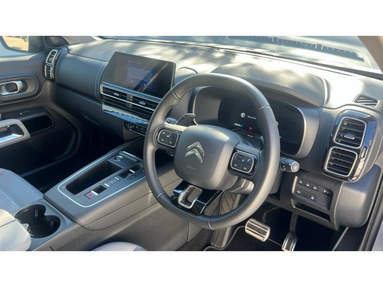 Citroen C5 Aircross 1.6 Plug-in Hybrid E-series 5dr e-EAT8 Hatchback, , Gloucester Ford have this Citroen C5 Aircross 1.6 Plug-in Hybrid E-series finished in the Cumulus Grey Metallic paint. This C5 Aircross 1.6 Plug-in Hybrid is a superb example of modern SUV design combined with efficient hybrid technology. It offers a refined driving experience, impressive practicality, and a level of comfort that Citron is well known for. The elegant Cumulus Grey Metallic finish gives the vehicle a sophisticated and contemporary appearance, perfectly complementing the bold styling of the C5 Aircross. Its confident stance, distinctive front design, and smooth lines create a strong road presence while maintaining a premium feel. Powered by a 1.6-litre plug-in hybrid system, the C5 Aircross delivers a smooth and responsive drive while also promoting excellent fuel efficiency and reduced emissions. The ability to drive short distances in electric mode makes it ideal for city journeys, while the petrol engine provides reassurance and range for longer trips. This balance of performance and efficiency makes the vehicle both practical and environmentally conscious. Inside, the cabin is bright and welcoming thanks to the panoramic roof, which floods the interior with natural light and enhances the feeling of space for both driver and passengers. Citrons focus on comfort is evident throughout, with supportive seating and thoughtful interior design ensuring a relaxed driving experience whether commuting or travelling further afield. Technology and convenience features further enhance everyday usability. Rear parking sensors and a rear-view camera provide additional confidence when manoeuvring or parking in tighter spaces, making the vehicle easy to handle even in busy environments. Overall, this Citron C5 Aircross Plug-in Hybrid E-Series combines stylish design, innovative hybrid technology, and practical features to create a versatile and comfortable SUV. With its attractive colour, panoramic roof, and helpful driver-assistance features, it represents an excellent choice for drivers seeking efficiency, comfort, and modern functionality.
