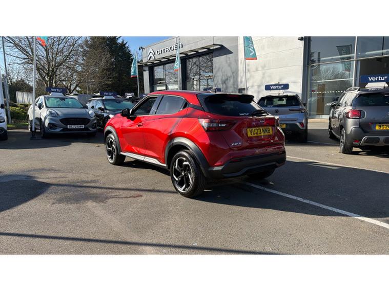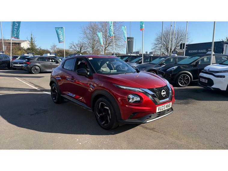 Nissan Juke 1.0 DiG-T 114 N-Connecta 5dr Petrol Hatchback, , This 2023 Nissan Juke DIG-T N Connecta boasts exceptionally low mileage for its age, having covered just 9419 miles. This stylish compact SUV is powered by an efficient 1.0 litre petrol engine, meeting Euro 6 emission standards. It comes equipped with a suite of convenient features, including a rear view camera with parking assistance and rear parking sensors to make manoeuvring easier. Stay connected and entertained with Apple CarPlay and Google Android Auto integration, while LED headlights provide excellent visibility. The Intelligent Key system offers keyless entry and walk away lock and approach unlock functions for added convenience.
