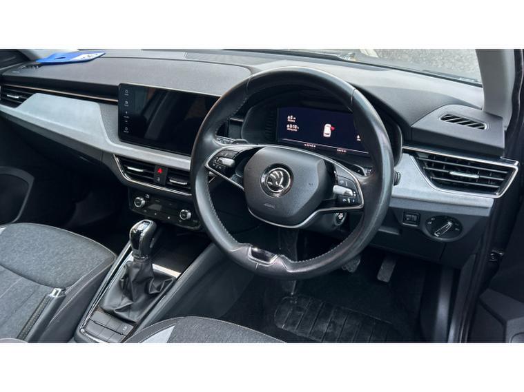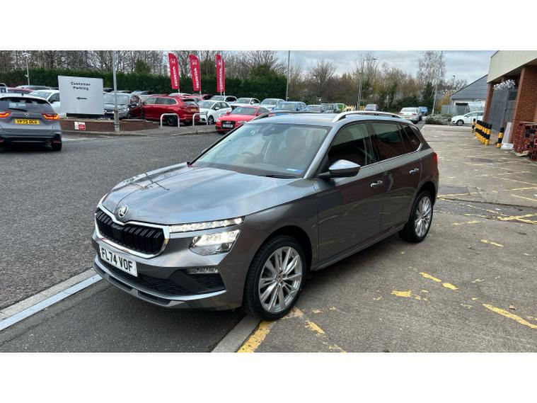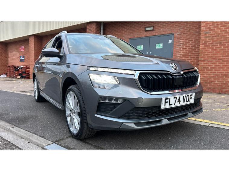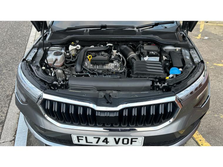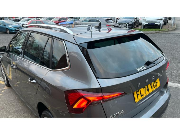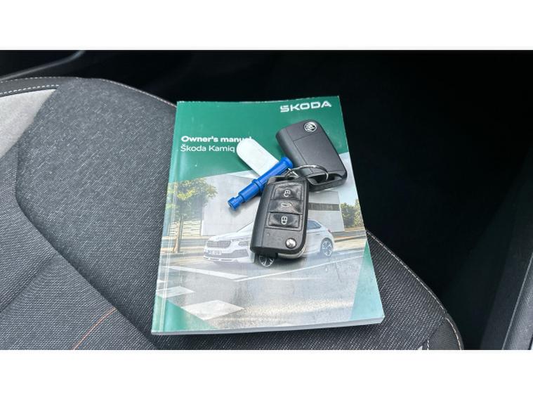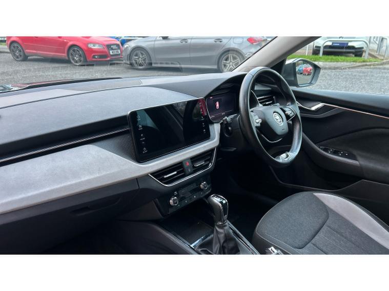 Skoda Kamiq 1.0 TSI SE L 5dr DSG Petrol Hatchback, , The 2024 Skoda Kamiq 1.0 TSI SE L DSG is a standout compact SUV that balances premium features with everyday usability. Following its recent facelift, this model benefits from the updated evo2 engine, a 1.0-litre three-cylinder turbocharged petrol unit that now produces 116 PS. When paired with the 7-speed DSG automatic gearbox, it delivers a smooth driving experience with a 062 mph time of 10.2 seconds and a respectable combined fuel economy of around 50 mpg. The SE L specification enhances the Kamiqs kerb appeal and interior comfort significantly over the entry-level models. On the outside, it is distinguished by 18-inch Fornax alloy wheels, chrome window surrounds, and rear privacy glass. Inside, the cabin feels more upscale thanks to the Lodge interior, which features grey and black microsuede upholstery and customisable ambient lighting. Practicality remains at the core of the Kamiq's design. It offers a generous 400-litre boot and plenty of rear legroom for a car of its size. It also retains Skodas signature Simply Clever touches, such as the umbrella tucked into the drivers door and an ice scraper stored in the fuel filler cap. Safety is equally high-priority, with Front Assist, Lane Assist, and Traffic Sign Recognition all included as standard to maintain its 5-star Euro NCAP rating.