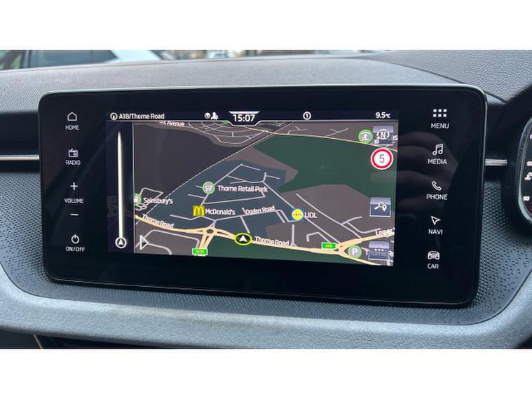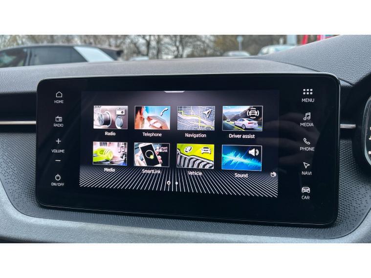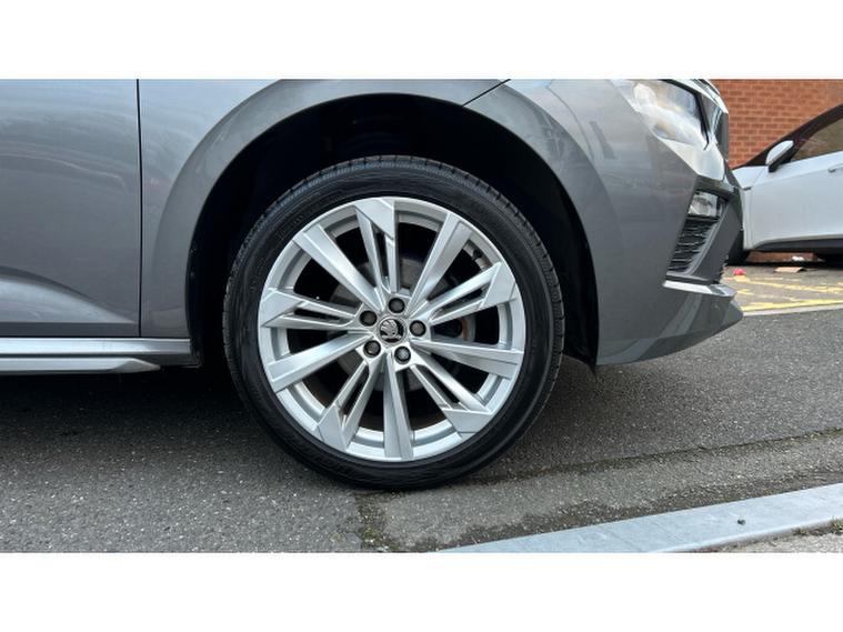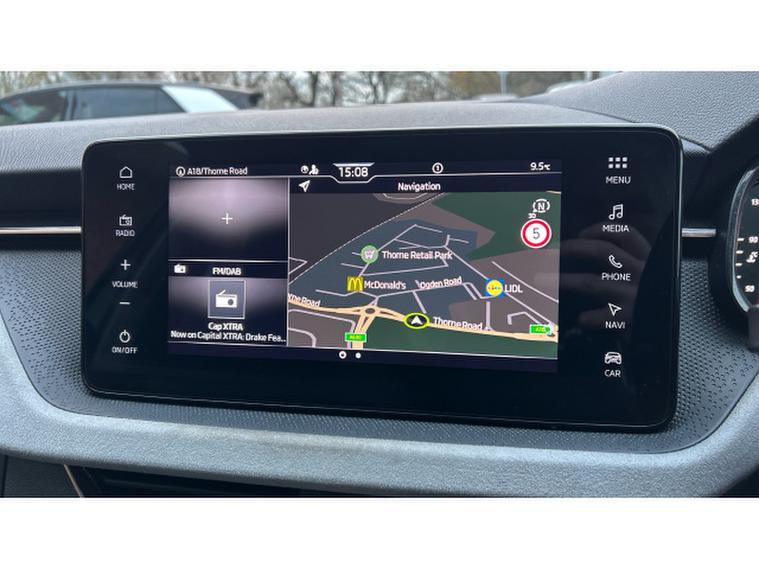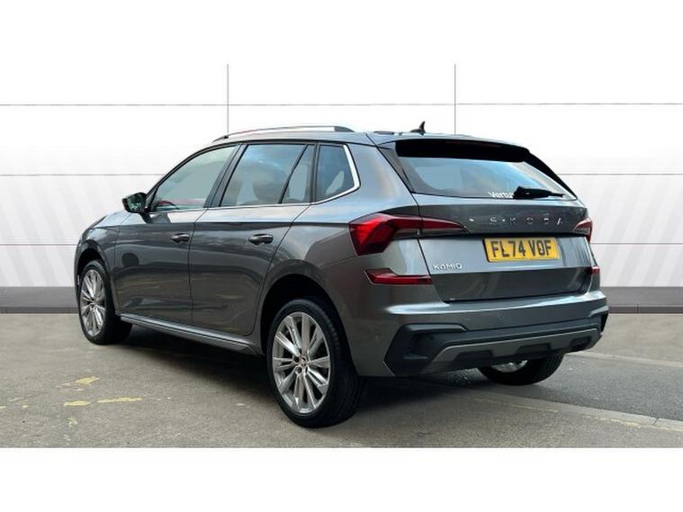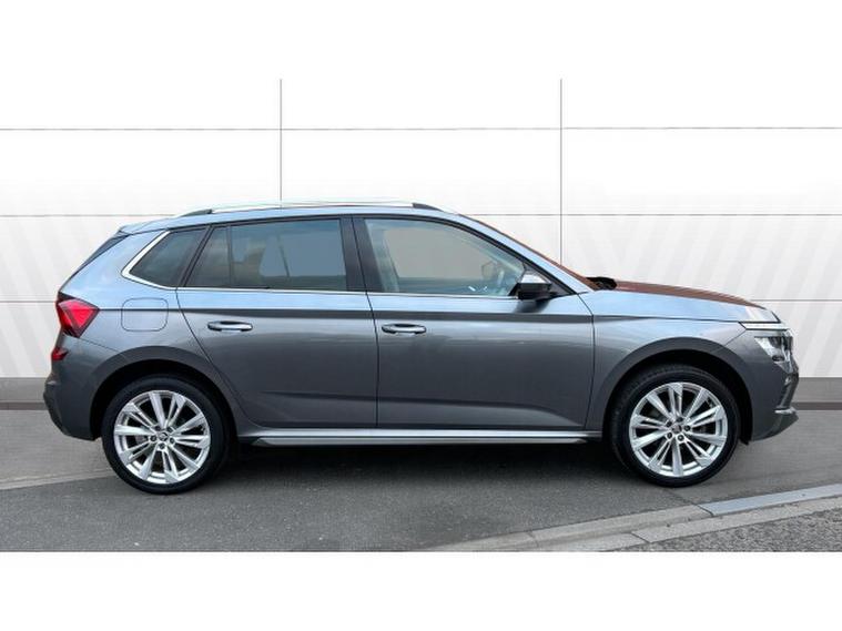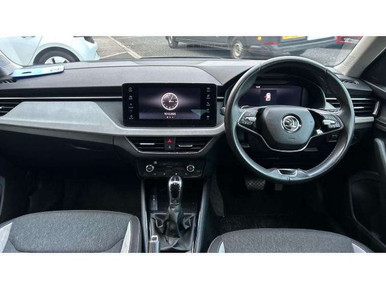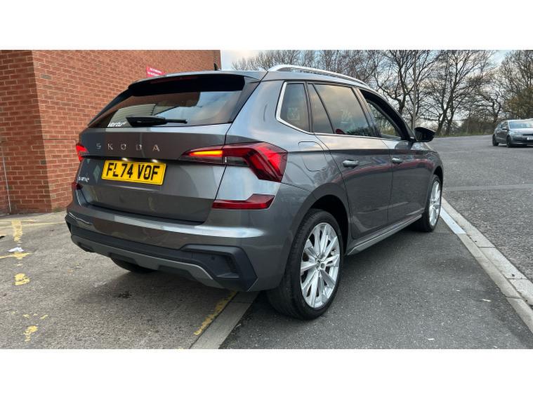 Skoda Kamiq 1.0 TSI SE L 5dr DSG Petrol Hatchback, , The 2024 Skoda Kamiq 1.0 TSI SE L DSG is a standout compact SUV that balances premium features with everyday usability. Following its recent facelift, this model benefits from the updated evo2 engine, a 1.0-litre three-cylinder turbocharged petrol unit that now produces 116 PS. When paired with the 7-speed DSG automatic gearbox, it delivers a smooth driving experience with a 062 mph time of 10.2 seconds and a respectable combined fuel economy of around 50 mpg. The SE L specification enhances the Kamiqs kerb appeal and interior comfort significantly over the entry-level models. On the outside, it is distinguished by 18-inch Fornax alloy wheels, chrome window surrounds, and rear privacy glass. Inside, the cabin feels more upscale thanks to the Lodge interior, which features grey and black microsuede upholstery and customisable ambient lighting. Practicality remains at the core of the Kamiq's design. It offers a generous 400-litre boot and plenty of rear legroom for a car of its size. It also retains Skodas signature Simply Clever touches, such as the umbrella tucked into the drivers door and an ice scraper stored in the fuel filler cap. Safety is equally high-priority, with Front Assist, Lane Assist, and Traffic Sign Recognition all included as standard to maintain its 5-star Euro NCAP rating.