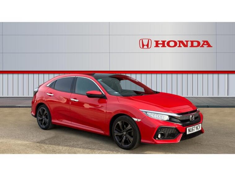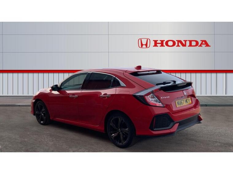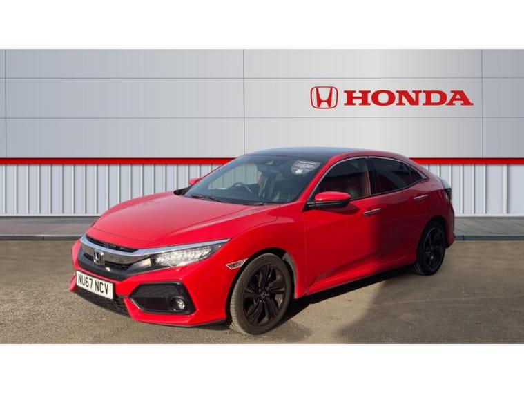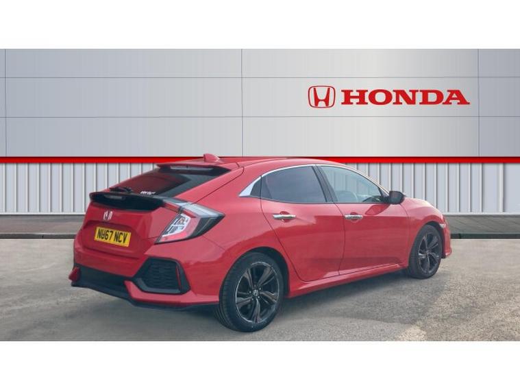 Honda Civic 1.5 VTEC Turbo Prestige 5dr Petrol Hatchback, , The 2018 Honda Civic Hatchback 1.5 VTEC Turbo Prestige in red is a striking and engaging compact car that perfectly blends sporty performance with everyday practicality. The vibrant red finish gives it a bold and dynamic presence on the road, accentuating its sleek, aerodynamic lines, aggressive front grille, and distinctive rear design. This Civic stands out in its segment for both style and substance.