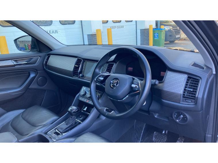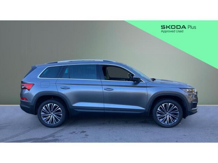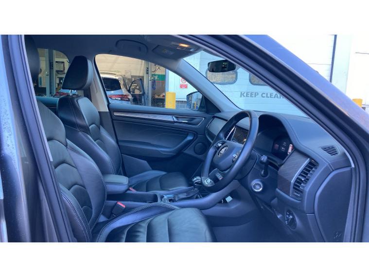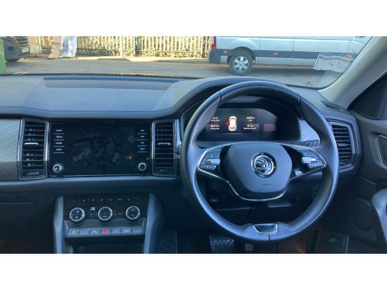 Skoda Kodiaq 1.5 TSI SE L Executive 5dr DSG [7 Seat] Petrol Estate, , The 2022 Skoda Kodiaq Estate 1.5 TSI SE L Executive 5dr DSG [7 Seat] stands as a consummate family SUV, combining space, technology and comfort with the easy-going efficiency of a modern petrol powertrain. Its 1.5-litre turbocharged engine, producing around 150PS and paired with a smooth seven-speed DSG automatic gearbox, delivers relaxed yet capable performance reaching 062mph in just under 10 seconds while returning close to 3940mpg, making it well suited to both daily duties and long motorway journeysThe SE L Executive trim elevates the experience with a premium, tech-rich cabin, featuring a 10.25-inch Virtual Cockpit, touchscreen navigation with wireless smartphone connectivity, heated seats and wireless charging, alongside conveniences such as keyless entry and a powered tailgatePracticality is where the Kodiaq truly excels, offering flexible seven-seat versatility, sliding and folding rear seats and a cleverly designed interior packed with storage solutions, making it ideal for growing families or those needing maximum adaptabilityAdd in advanced safety systems including Front Assist with autonomous emergency braking, lane-keeping technologies and a full suite of airbags, and the result is a composed, spacious and intelligently equipped SUV that delivers comfort, confidence and everyday usability in equal measure.