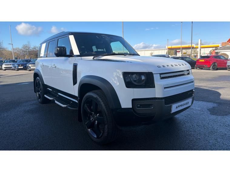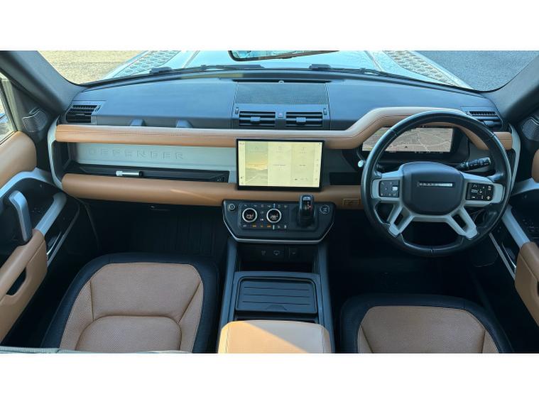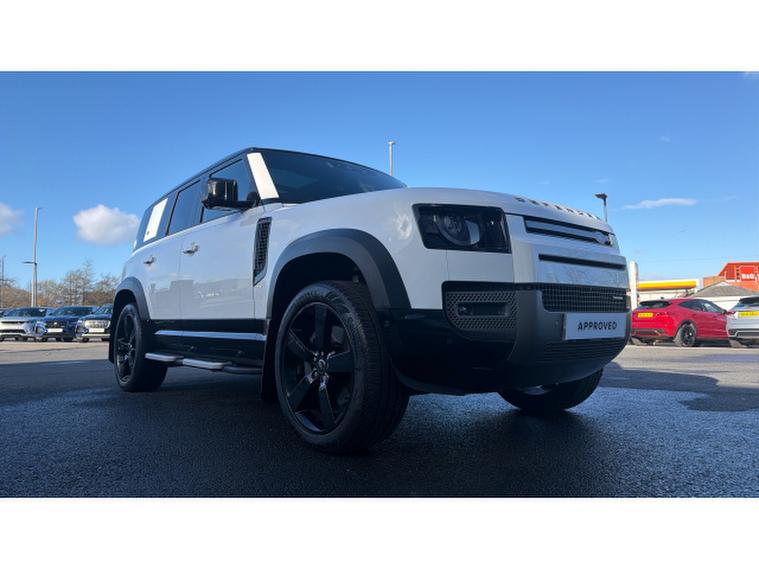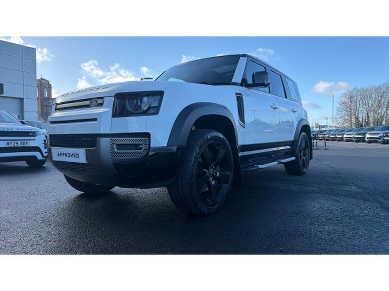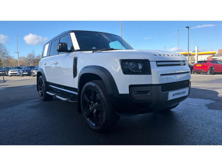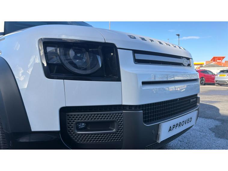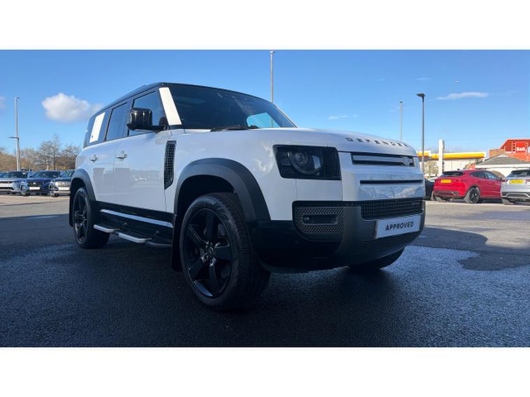 Land Rover Defender 3.0 D250 X-Dynamic HSE 110 5dr Auto Diesel Estate, , Vertu JLR Bolton are proud to offer this stunning Defender 3.0 D250 X-Dynamic HSE 110 finished in Fuji White with Caraway Tan leather interior. This one owner car has been immaculately looked after by its former owner and comes supplied new by us and fully maintained by us which we serviced the car July 2025 at 20043 miles. This car comes with optional 22 inch gloss black alloys, 22 inch full size spare wheel, air quality sensors, cabin air purification pro and three zone climate control with rear cooling assist, and complimented with fixed sidesteps, classic mudflaps, spare wheel cover, and wheel arch protection. Standard features include touchscreen Sat Nav, cooled and heated electric memory front seats, adaptive cruise control, heated steering wheel, contrast black roof, sliding glass panoramic sunroof, heated windscreen, Apple car play, LED headlights, auto lights and wipers, DAB radio, Bluetooth, trip computer, Isofix, keyless entry, push button start, Meridian sound system, cubby box, steering wheel audio controls and much more. This car is ready to view, test drive and drive away today and comes as part of the Approved JLR programme which includes 12 months warranty, 12 months roadside assistance, MOT test warranty, 165 multi point inspection and complimentary experience day as part of purchase