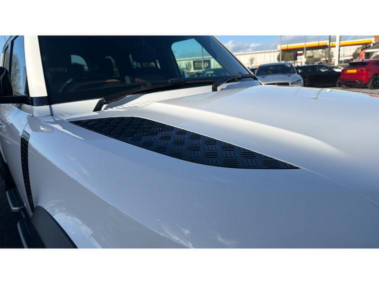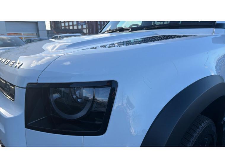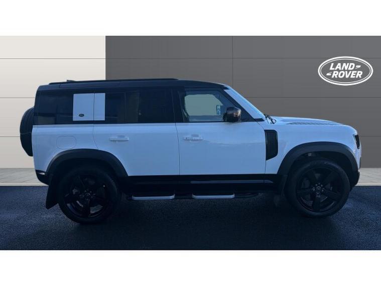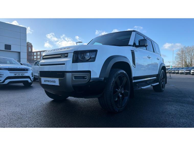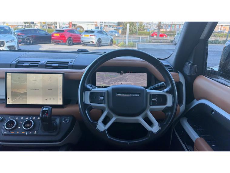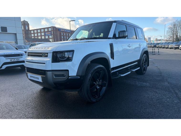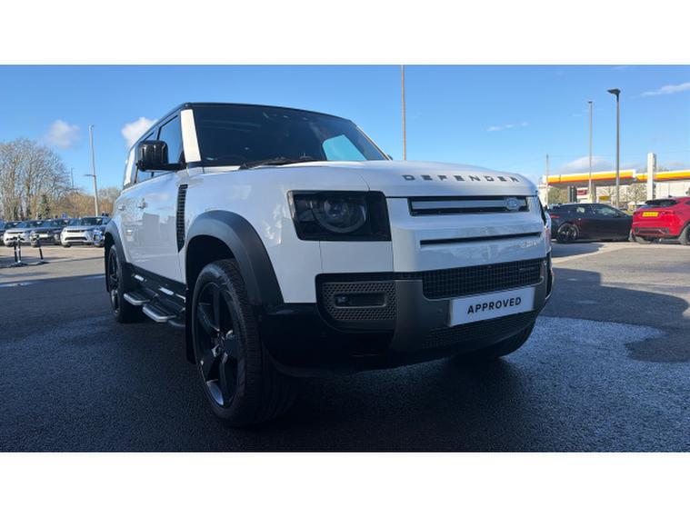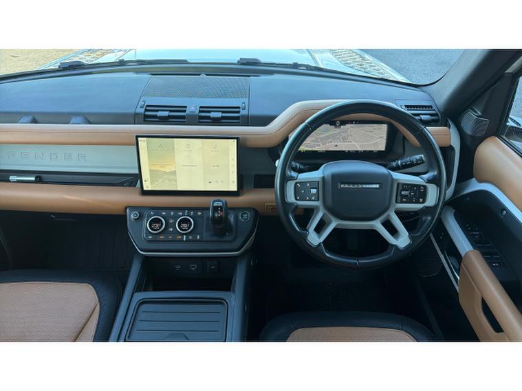 Land Rover Defender 3.0 D250 X-Dynamic HSE 110 5dr Auto Diesel Estate, , Vertu JLR Bolton are proud to offer this stunning Defender 3.0 D250 X-Dynamic HSE 110 finished in Fuji White with Caraway Tan leather interior. This one owner car has been immaculately looked after by its former owner and comes supplied new by us and fully maintained by us which we serviced the car July 2025 at 20043 miles. This car comes with optional 22 inch gloss black alloys, 22 inch full size spare wheel, air quality sensors, cabin air purification pro and three zone climate control with rear cooling assist, and complimented with fixed sidesteps, classic mudflaps, spare wheel cover, and wheel arch protection. Standard features include touchscreen Sat Nav, cooled and heated electric memory front seats, adaptive cruise control, heated steering wheel, contrast black roof, sliding glass panoramic sunroof, heated windscreen, Apple car play, LED headlights, auto lights and wipers, DAB radio, Bluetooth, trip computer, Isofix, keyless entry, push button start, Meridian sound system, cubby box, steering wheel audio controls and much more. This car is ready to view, test drive and drive away today and comes as part of the Approved JLR programme which includes 12 months warranty, 12 months roadside assistance, MOT test warranty, 165 multi point inspection and complimentary experience day as part of purchase