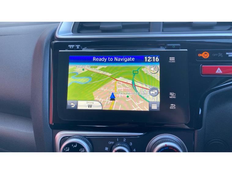 A built‑, in navigation system and infotainment display provide straightforward access to maps and entertainment, while air conditioning, cruise control, and steering‑, mounted controls add further convenience. Practical storage spaces throughout the cabin and excellent visibility make the Jazz exceptionally user‑, friendly.