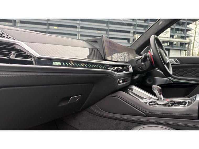 This X5M is an exceptionally spacious SUV which boasts a wonderfully smooth ride with endless space for passengers and storage as well as a wealth of technology to improve performance, safety and driving ease. Diving into the standout features The 21 Inch Front & 22 Inch Rear Star-Spoke Alloy Wheels give that car a race car like stance with a delightful contrast to the stunning Carbon Black finish. The Heated Electric Memory Merino Leather Seating provides wonderful comfort, adjustability and a warming seat, perfect for the cold winter months. Parking Assistant Plus helps guide you through tricky parking scenarios for a stress-free parking experience. Harman Kardon Surround Sound System lets you listen to all of your favourite sounds through a studio like sound system. Wireless Charging lets you stay connected and charged on the go for endless music streams and hands-free calls.