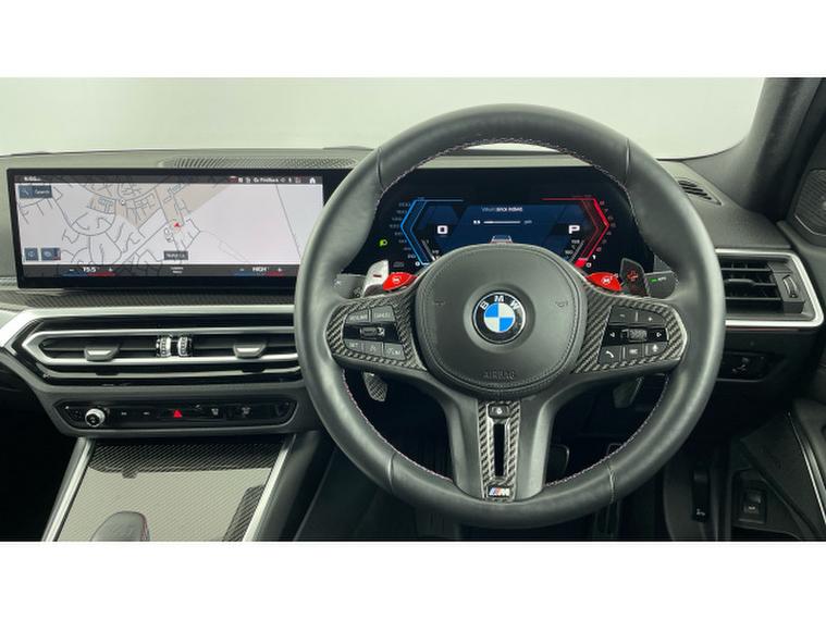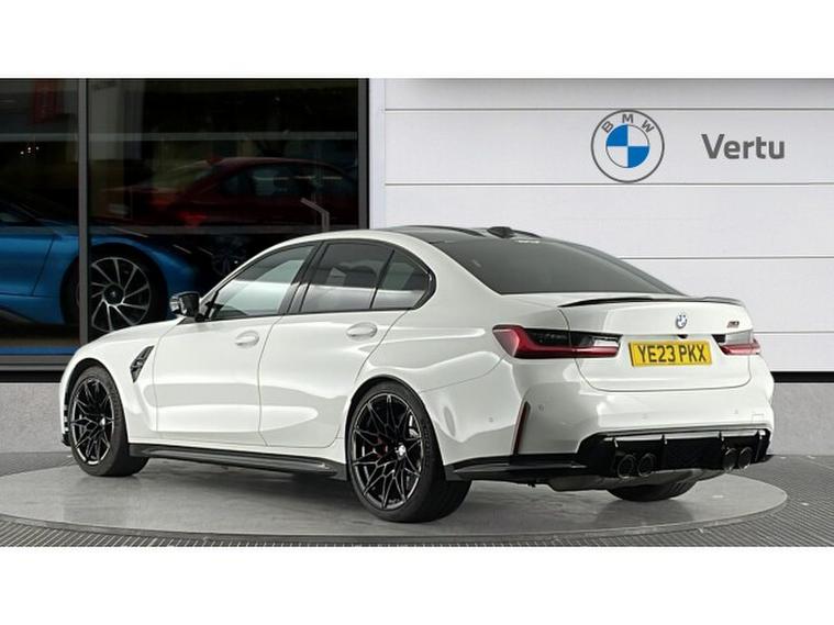 BMW M3 xDrive Competition M 4dr Step Auto Petrol Saloon, , This 2023 BMW M3 BiTurbo Competition presents an exceptional opportunity with its remarkably low mileage of just 7372 miles, a significant advantage for its age. This four wheel drive saloon, powered by a 3.0 litre petrol engine, meets Euro 6 emission standards and comes in the Competition trim. It boasts a Comfort Pack, which includes a heated steering wheel, and a Driving Assistant package featuring Blind Spot Assistance. For effortless manoeuvring, the Parking Assistant provides front and rear cameras and sensors, complemented by electric memory seats for personalised comfort.