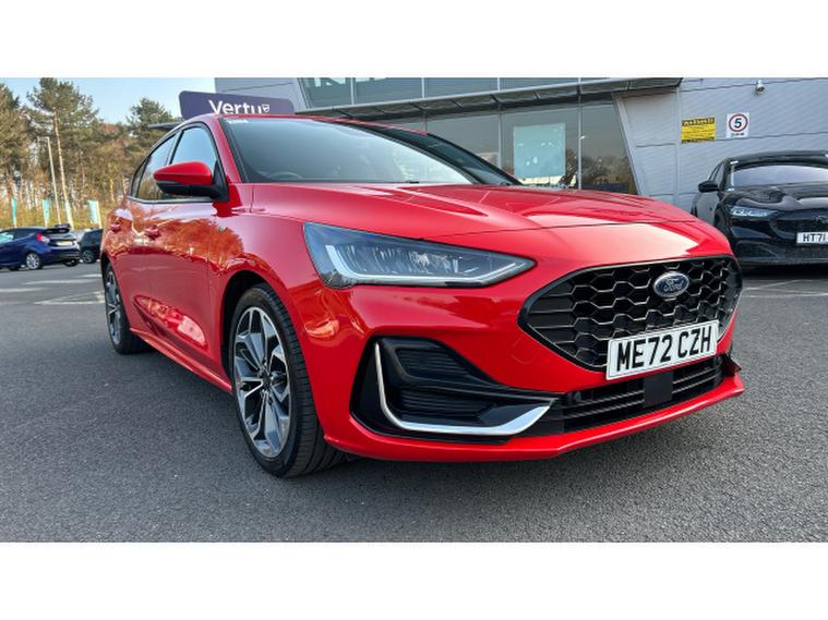 Ford Focus 1.5 EcoBlue ST-Line Vignale 5dr Auto Diesel Hatchback, , This gorgeous Race Red Focus isn't just a stunning top specification hatchback it also boasts A FULL SERVICE HISTORY & JUST ONE PREVIOUS OWNER! The car also benefits from APPLE CARPLAY & ANDROID AUTO meaning whether you want to listen to incoming messages, listen to the latest songs on Spotify or get live map updates this feature is definitely for you - AIR CONDITIONING to keep you cool in the summers and warm you up in these cold winter days this car won't be here long! Stylish, economical and exceptionally well specified, this Ford Focus 1.5 EcoBlue ST-Line Vignale Auto combines sporty design with premium comfort. Finished with the desirable ST-Line Vignale trim, it offers refined styling, advanced technology and excellent fuel efficiency from the smooth 1.5 diesel engine. Automatic transmission delivers effortless driving, while the spacious hatchback layout makes it practical for everyday use. Features include premium interior detailing, touchscreen infotainment, driver assistance systems and alloy wheels. A superb example of a well-balanced family hatchback with low running costs and strong road presence. All our vehicles at Vertu Motors come fully prepared with our peace of mind Main Dealer guarantee. Every vehicle is fully prepared both mechanically and cosmetically up to the highest standard which even includes having any tyre replaced that has less than 3mm tread depth (legal limit is 1.6mm). We ensure that you will have a minimum of 2 keys and to give you even further reassurance we also supply you with a 3 months complimentary warranty and a 14-day money back guarantee. Our vehicles also come with a full HPI vehicle check assuring you that your new vehicle will have no registered accident claims reported, or any outstanding finance, it also shows the vehicle has not been imported. **DUE TO HIGH STOCK TURNOVER WE RECOMMEND RESERVING THE CAR ONLINE TO AVOID DISAPPOINTMENT **