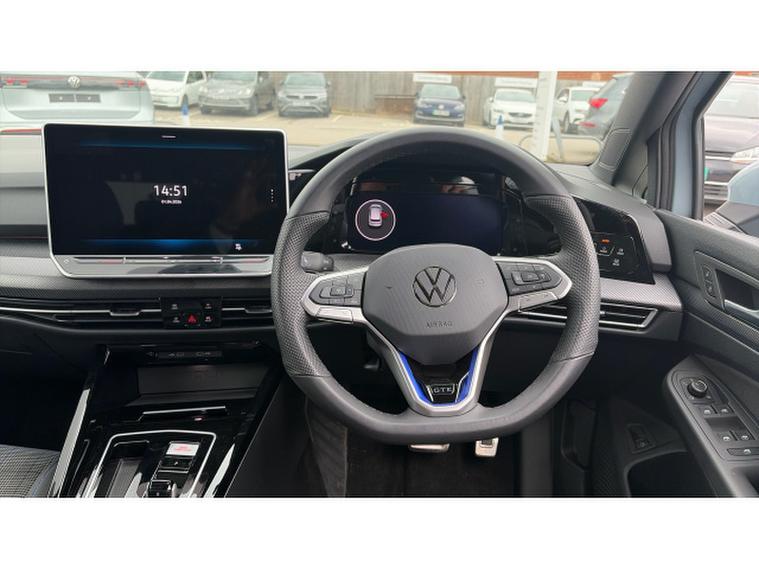 Volkswagen Golf 1.5 TSI 272 GTE eHybrid 5dr DSG Hatchback, , Boasting exceptionally low mileage for its age, this 2025 Volkswagen Golf TSI eHybrid GTE presents a remarkable opportunity. This one owner vehicle, finished in the GTE trim, features a sophisticated 1.5 litre petrol plug in hybrid engine, meeting Euro 6 emission standards. You will appreciate the convenience of a Head Up Display, front and rear parking sensors, and a mobile phone interface with wireless inductive charging. Furthermore, the multifunction front facing camera aids with distance control, and the LED matrix headlamps provide excellent visibility.