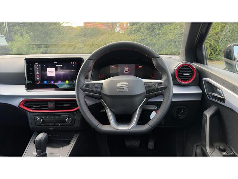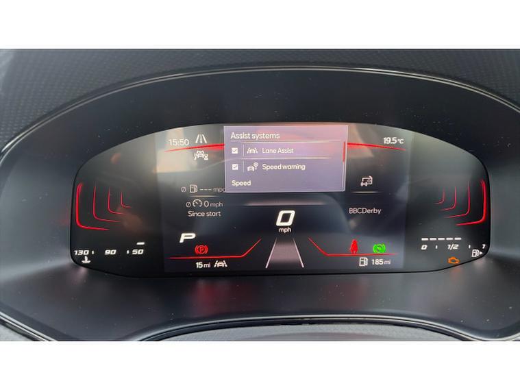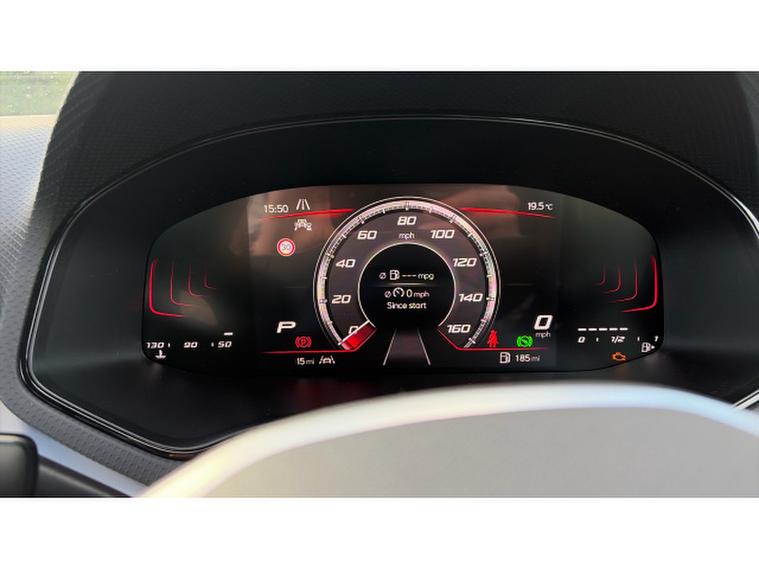 Step inside and the FR trim creates a modern, driver-focused environment filled with technology. A fully digital cockpit display delivers clear driving information, while the large central touchscreen infotainment system features satellite navigation and seamless Apple CarPlay and Android Auto connectivity. Sports seats offer excellent support, while air conditioning and cruise control ensure comfort on longer journeys. Ambient lighting enhances the premium feel, and advanced driver assistance systemsincluding lane assist, front assist and parking sensorsprovide added confidence and safety.
