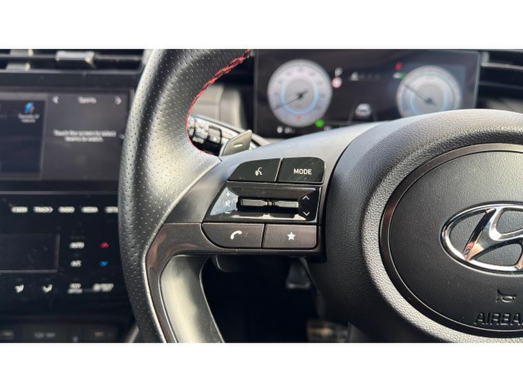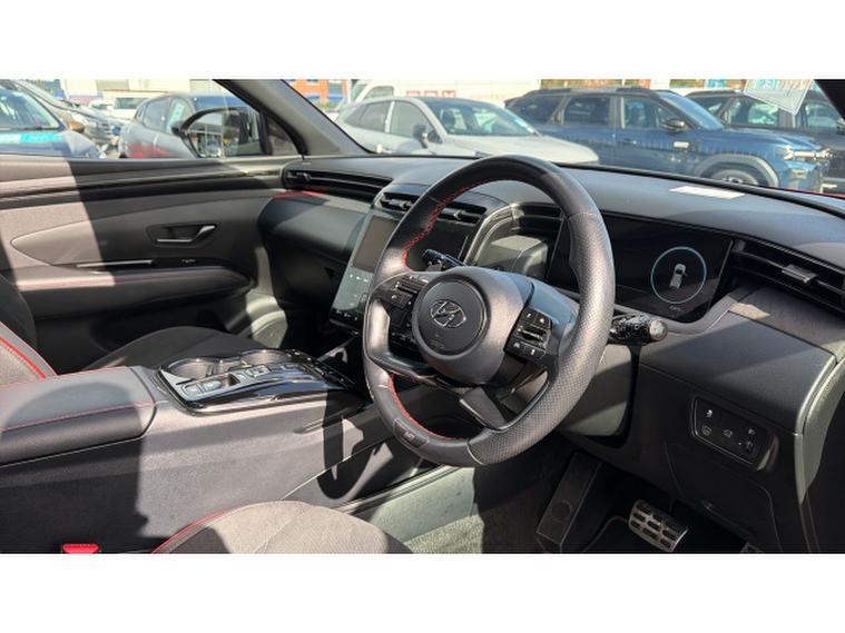 Hyundai TUCSON 1.6 TGDi Hybrid 230 N Line S 5dr 2WD Auto Hybrid Estate, , Slide into the drivers seat of this Hyundai Tucson N Line S and youre immediately greeted by a cabin that feels every bit as cutting-edge as it looks. Front and centre is a slick, high-definition touchscreen housing an intuitive satellite navigation system that makes getting lost a thing of the past. Whether youre navigating busy city streets or heading off on a weekend escape, directions are crisp, clear, and effortlessly accessible.