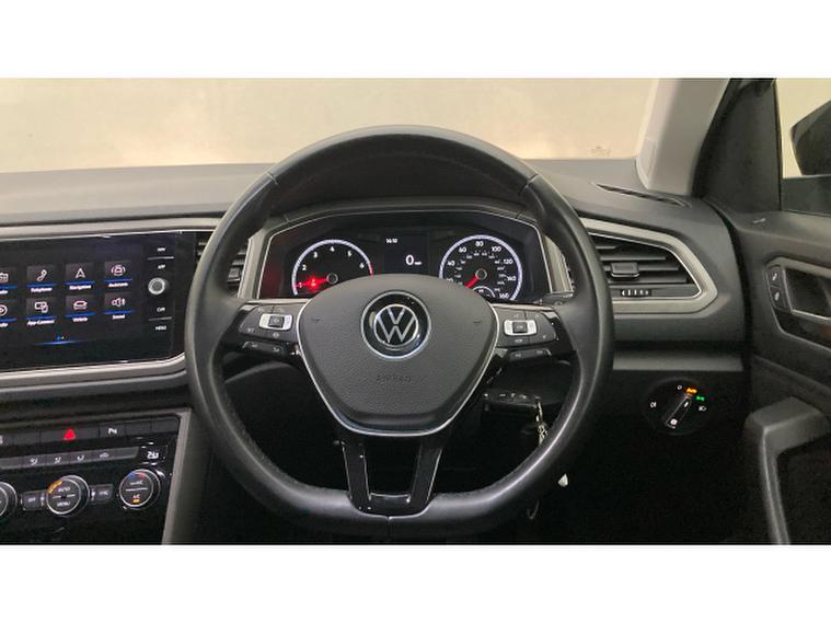 Powered by a responsive 1.0 TSI engine, it delivers a smooth and economical drive without compromising on performance. The exterior is enhanced by 17 Mayfield Black alloy wheels, privacy glass, and sporty design details that give the T-Roc a confident road presence.
