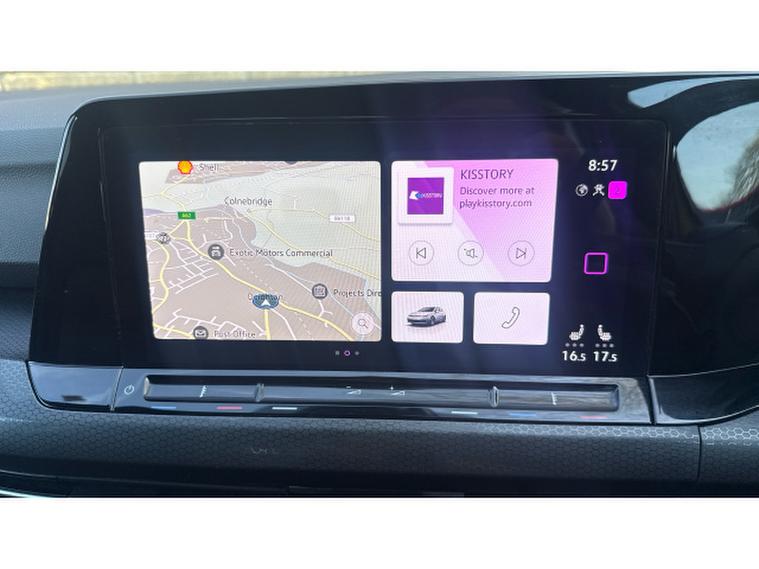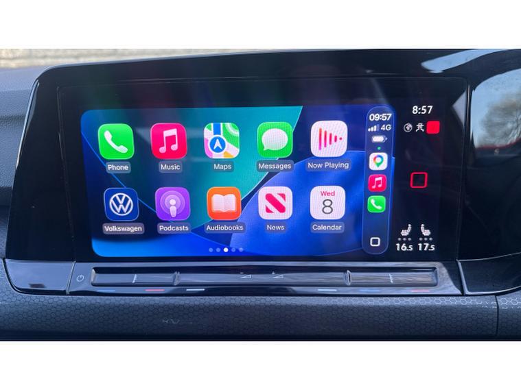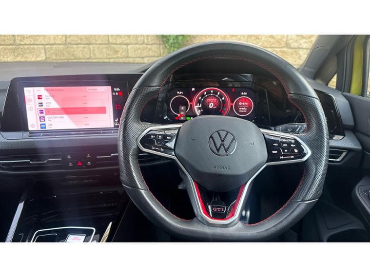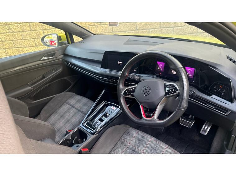 The GTI specification adds a sporty edge with distinctive styling, including GTI badging, alloy wheels, and a performance-inspired interior featuring sports seats and a multifunction steering wheel. The cabin also benefits from a digital cockpit display and a high-resolution touchscreen infotainment system with satellite navigation, Bluetooth connectivity, and seamless smartphone integration via Apple CarPlay and Android Auto. This car has optional 19" alloy upgrade, heated seats, heated steering wheel & rear view camera.