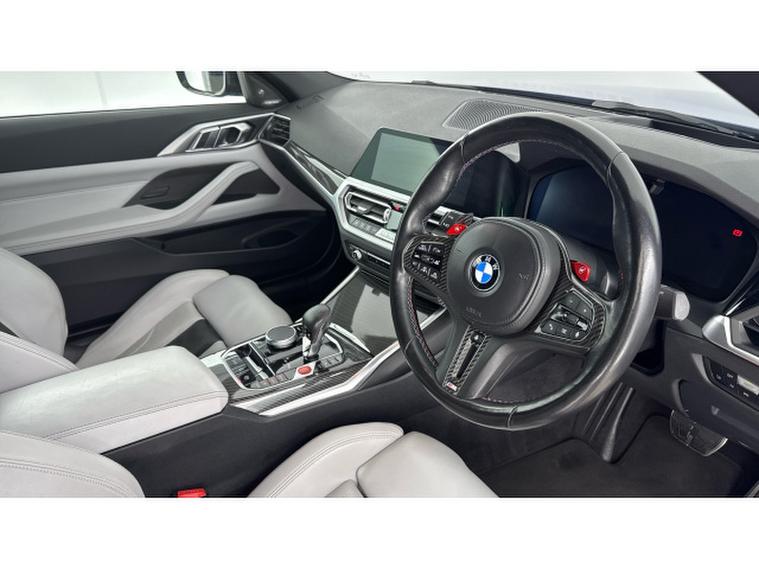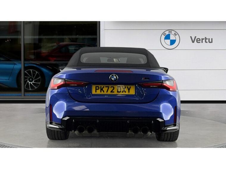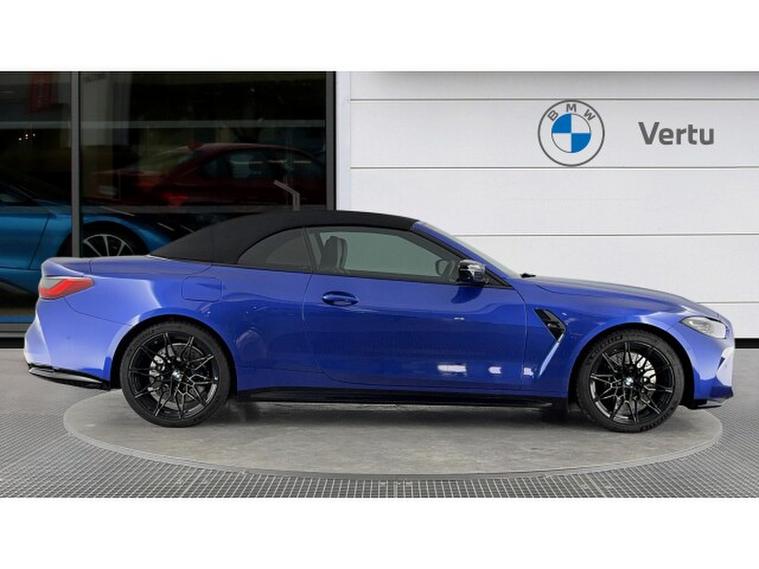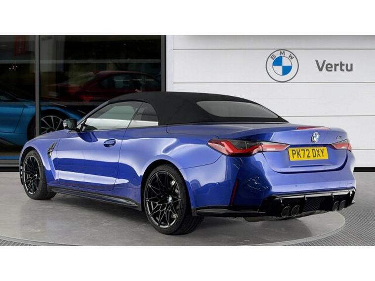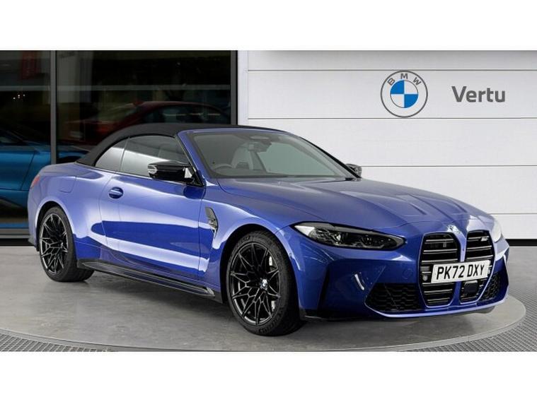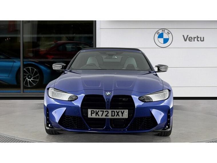 BMW M4 xDrive Competition M 2dr Step Auto Petrol Convertible, , This 2022 BMW M4 xDrive Competition is a remarkable example of performance engineering, boasting a powerful 3.0 litre petrol engine and meeting Euro 6 emission standards. This particular model, in its Competition trim, comes equipped with the Technology Plus Pack, which includes front and rear parking sensors along with a rear camera, making manoeuvring effortless. Additionally, the Speed Limit Display provides an extra layer of awareness for the driver. Experience exhilarating performance with a 0 to 62mph acceleration time of just 4.0 seconds, a figure that truly sets this M4 apart from its peers. This vehicle also offers a surprisingly large boot space, combining its sporting prowess with everyday practicality. Furthermore, its placement in a low insurance group makes it an appealing choice for those seeking both excitement and affordability. Join us at Vertu BMW Durham, where our experienced sales team are here to guide you from start to finish through your car buying journey, starting with an in-depth video presentation of your desired car, highlighting the standout features and areas of the car that are important to you. Buying an Approved Used BMW comes with a wealth of benefits including an Approved Used BMW Preparation process from our BMW qualified technicians, 12 Months Warranty, 12 Months Roadside Assistance, and 12 Months MOT. Your Approved Used BMW also has full-service history for added reassurance when you buy from us.