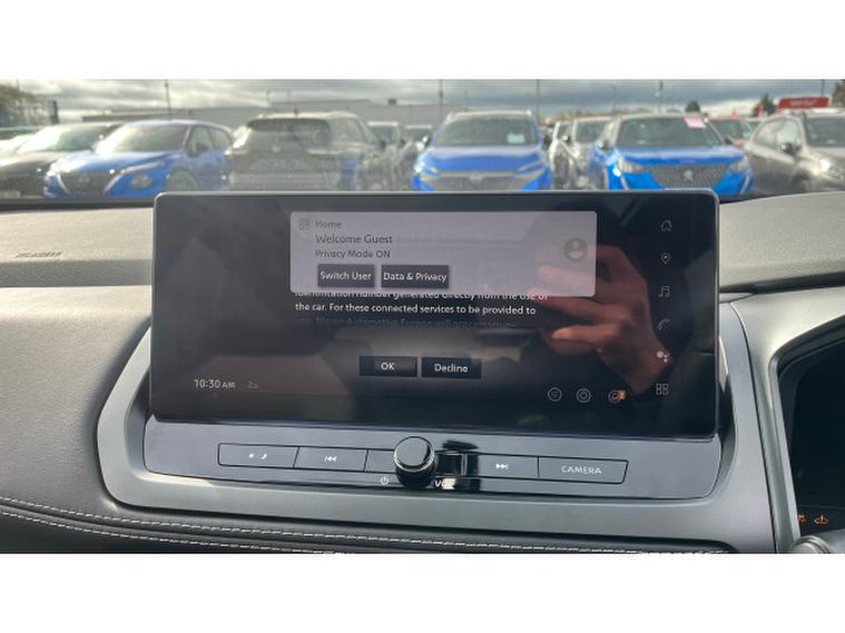 The N‑, Connecta specification adds a premium layer of technology and convenience, including NissanConnect touchscreen infotainment with Apple CarPlay / Android Auto, satellite navigation, 360 Around View Monitor, digital driver display, keyless entry, and a suite of Nissan Intelligent Mobility safety systems. This particular model also benefits from the desirable Glass Roof Pack, which floods the cabin with natural light and gives the interior a brighter, more spacious feel.