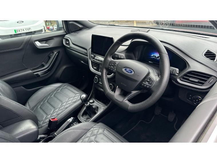 Ford Puma 1.0 EcoBoost Hybrid mHEV 155 ST-Line Vignale 5dr Petrol Hatchback, , This gorgeous metallic Solar Silver Puma isn't just a stunning top of the range hatchback it also boasts A FULL SERVICE HISTORY & JUST ONE PREVIOUS OWNER! The car also benefits from APPLE CARPLAY & ANDROID AUTO meaning whether you want to listen to incoming messages, listen to the latest songs on Spotify or get live map updates this feature is definitely for you - AIR CONDITIONING to keep you cool in the summers and warm you up in these cold winter days this car won't be here long! The Ford Puma 1.0 EcoBoost Hybrid mHEV 155 ST-Line Vignale blends sporty performance, premium comfort and everyday practicality in one stylish package. Its 155PS mild-hybrid engine delivers impressive efficiency without compromising driving enjoyment, while the ST-Line Vignale trim adds luxury touches including refined interior materials, advanced driver technology and distinctive exterior styling. With a spacious cabin, clever storage solutions such as the MegaBox, and excellent connectivity features, this Puma is an ideal choice for drivers wanting economy, comfort and standout design in a compact SUV. All our vehicles at Vertu Motors come fully prepared with our peace of mind Main Dealer guarantee. Every vehicle is fully prepared both mechanically and cosmetically up to the highest standard which even includes having any tyre replaced that has less than 3mm tread depth (legal limit is 1.6mm). We ensure that you will have a minimum of 2 keys and to give you even further reassurance we also supply you with a 3 months complimentary warranty and a 14-day money back guarantee. Our vehicles also come with a full HPI vehicle check assuring you that your new vehicle will have no registered accident claims reported, or any outstanding finance, it also shows the vehicle has not been imported. **DUE TO HIGH STOCK TURNOVER WE RECOMMEND RESERVING THE CAR ONLINE TO AVOID DISAPPOINTMENT **