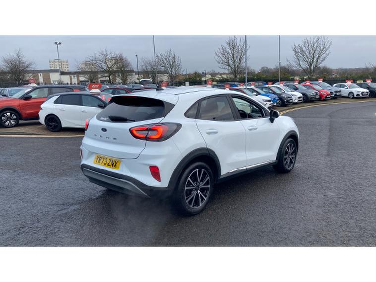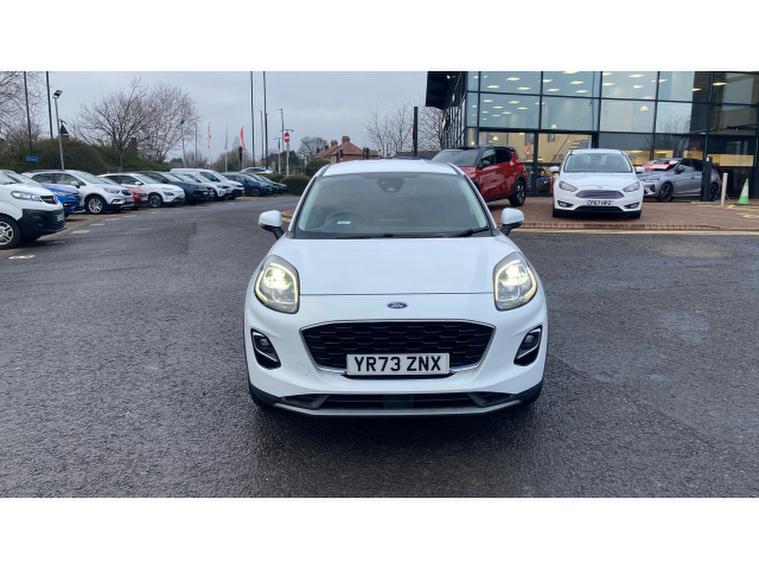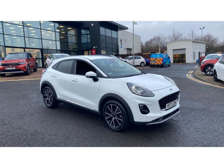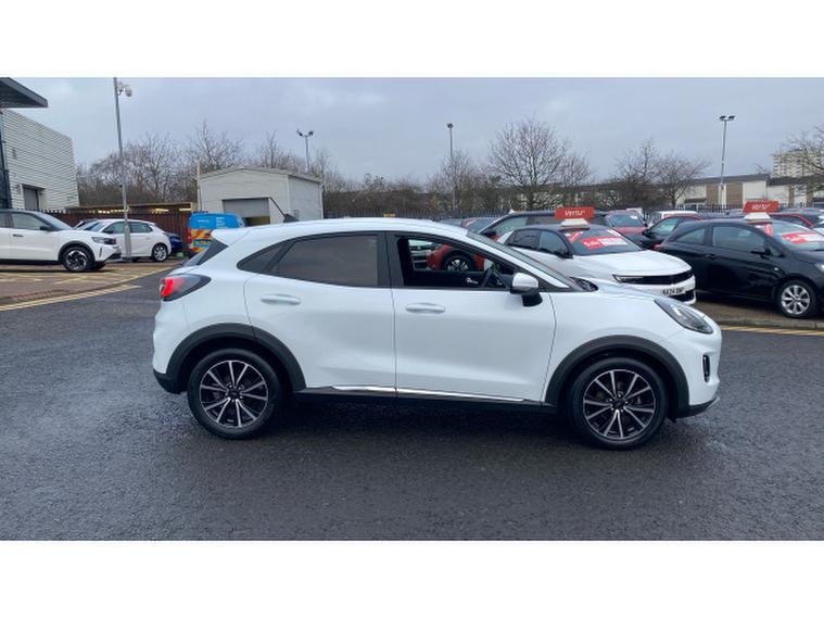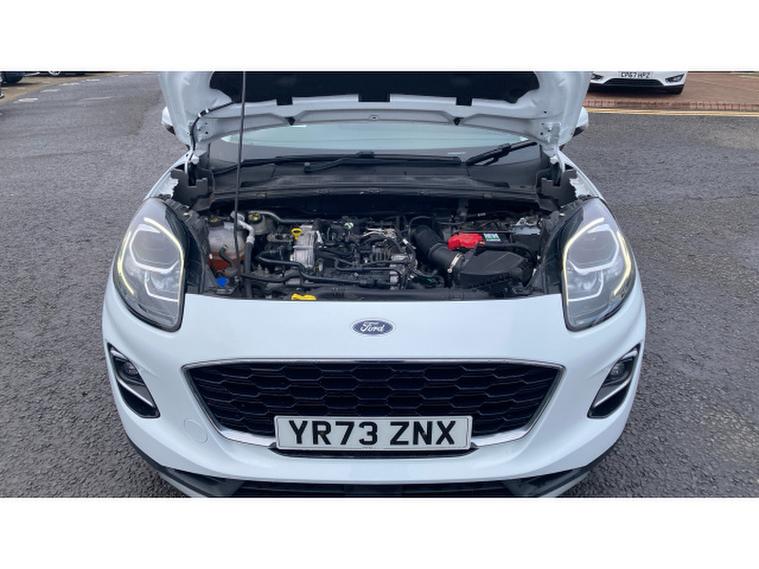 Ford Puma 1.0 EcoBoost Hybrid mHEV Titanium 5dr Petrol Hatchback, , Gloucester Ford have this 1 owner from new Ford Puma 1.0 mHEV Titanium finished in Frozen White. This Ford Puma mHEV Titanium is a fantastic all-rounder that blends modern efficiency, smart technology, and everyday practicality into one stylish package. Its crisp Frozen White finish gives the car a clean, contemporary look, perfectly complementing the Pumas sleek lines and compact SUV stance. The 1.0-litre EcoBoost mild hybrid engine delivers a refined and responsive driving experience. Producing around 125bhp, it offers a smooth balance of performance and efficiency. The mild hybrid system enhances acceleration while helping to reduce emissions, making it an excellent choice for both city driving and longer motorway journeys. Inside, the Titanium trim provides a comfortable and well-designed cabin, with high-quality materials and a driver-focused layout. The inclusion of the SYNC 3 infotainment system with built-in satellite navigation ensures a seamless and intuitive experience, allowing easy access to navigation, media, and smartphone connectivity. Everything is designed to keep you informed, connected, and in control while on the move. Practicality is another standout feature of the Puma. Despite its compact size, it offers generous interior space and clever storage solutions, making it ideal for daily use. The rear parking sensors add a valuable layer of convenience, making manoeuvring in tight spaces simple and stress-free. On the road, the Puma is widely regarded as one of the best-handling cars in its class, offering agile steering and a confident ride that makes every journey enjoyable . Whether navigating busy urban streets or cruising on the open road, it feels composed and engaging. Overall, the Ford Puma Titanium is a smart, efficient, and stylish choice. It delivers a premium driving experience with impressive technology and practicality, making it a standout option in the compact SUV market.
