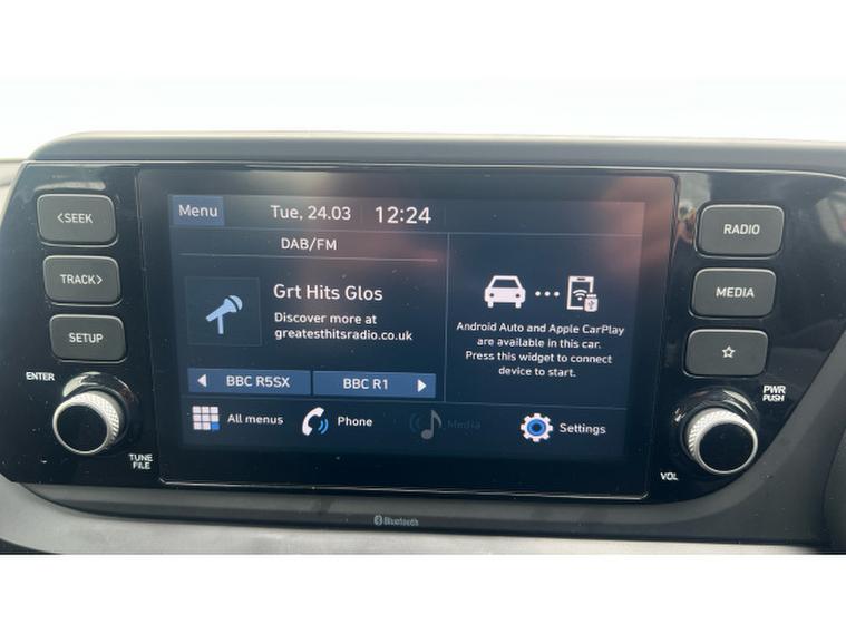 Hyundai i20 1.0T GDi 48V MHD SE Connect 5dr Petrol Hatchback, , Gloucester Ford have this Hyundai I20 1.0T GDi MHD SE Connect finished in Polar White. This i20 SE Connect is a smart, modern hatchback that delivers an excellent balance of efficiency, technology and everyday practicality. Finished in the clean and contemporary Polar White, this model has a fresh and stylish appearance that complements the i20s sleek design and confident road presence. With its sculpted body lines and distinctive front grille, the i20 stands out as one of the most attractive and well-designed cars in the supermini class. The 1.0-litre turbocharged petrol engine paired with mild-hybrid (MHD) technology provides a smooth and efficient driving experience. The hybrid assistance helps improve fuel economy and reduce emissions while maintaining responsive performance, making the i20 equally suited to city commuting and longer motorway journeys. Drivers can expect a refined and economical drive that keeps running costs manageable without sacrificing everyday usability. The i20 offers a comfortable and well-designed environment with impressive technology for a car of its class. The SE Connect trim features a user-friendly touchscreen infotainment system with smartphone connectivity such as Apple CarPlay and Android Auto, allowing easy access to navigation, music and communication while on the move. The clear digital displays and intuitive layout make the driving experience both enjoyable and convenient. Practicality is another strong point of the Hyundai i20. The interior provides generous space for passengers along with a useful boot, making it ideal for daily errands, commuting or weekend trips. Hyundai has also equipped the car with a range of intelligent safety and driver-assistance features including lane keeping assist, forward collision avoidance and cruise control to enhance driver confidence. This particular model also benefits from rear parking sensors and a rear-view camera, which make parking and reversing simple and stress-free. These features help drivers manoeuvre confidently in tighter spaces and improve visibility when reversing.