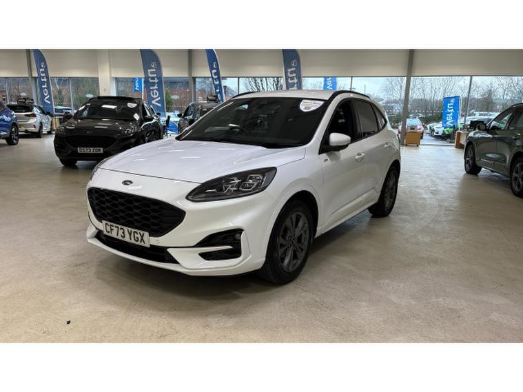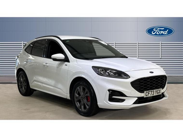 Ford Kuga 2.5 FHEV ST-Line Edition 5dr CVT Hybrid Estate, , Get ready to experience the perfect blend of efficiency, technology, and style with this 2023 Ford Kuga ST-Line FHEV in striking Frozen White, offered with low mileage. This Ford Kuga isnt just an SUVits a forward-thinking, driver-focused machine that makes every journey smarter and more enjoyable.