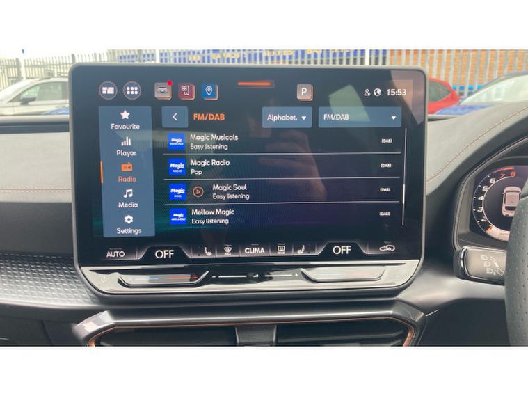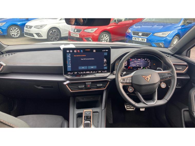 CUPRA Leon 1.5 eTSI 150 V2 5dr DSG Petrol Hatchback, , Discover the 2025 CUPRA Leon eTSI V2, a sophisticated petrol hybrid designed for the modern driver. This Euro 6 compliant model boasts a responsive 1.5 litre engine, offering an impressive 0-62mph acceleration in just 8.7 seconds. Experience seamless entry and ignition with KESSY Advanced Keyless Start and Entry, while the integrated Wireless Phone Charger keeps your devices powered on the go. Stay connected and entertained with Full Link Smartphone Integration, compatible with both Android Auto and Apple CarPlay, all managed through the Media System Plus with Navigation and Bluetooth connectivity.